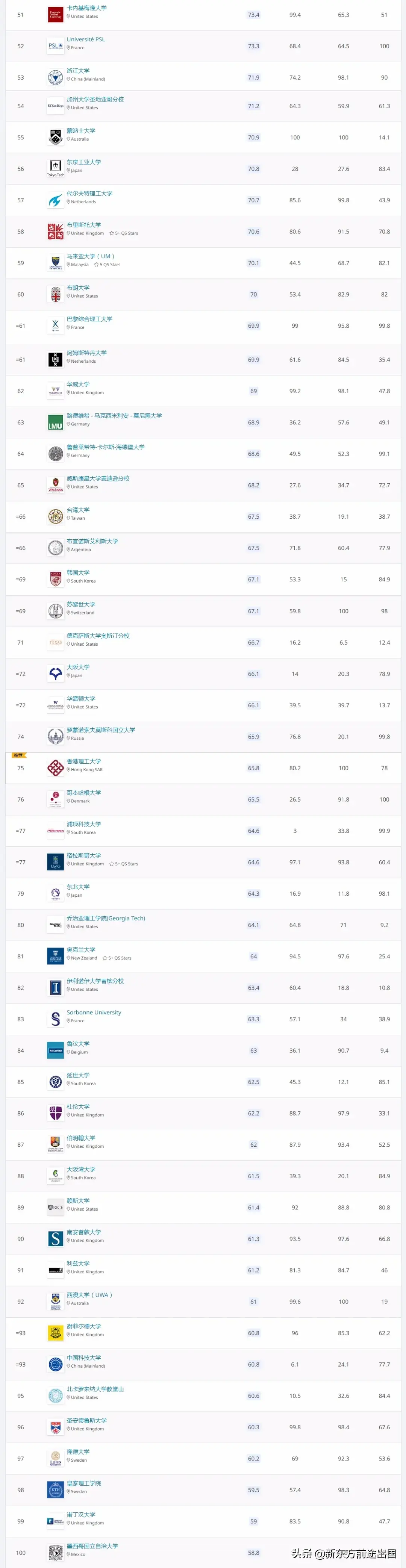 5. 国际教师比例5%:国际化指标之一,它衡量的是大学中非本国教师的比例;