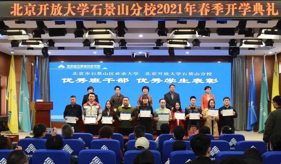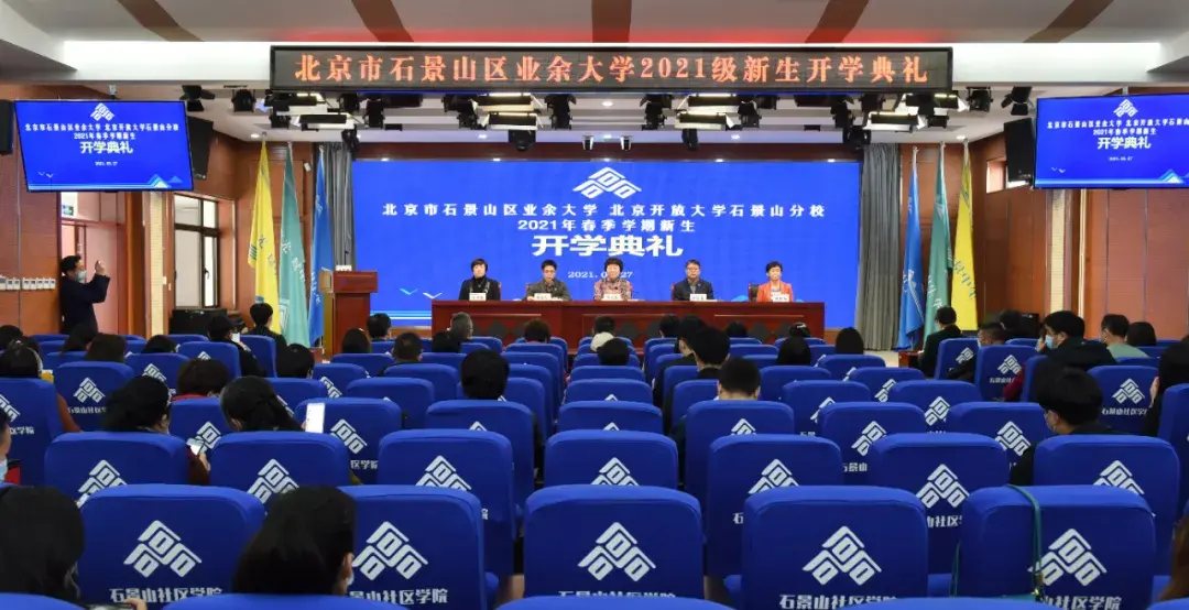 3月27日,北京市石景山区业余大学、北京开放大学石景山分校隆重举行2021级新生开学典礼。党总支书记于志勇,校长杨文霞等校领导、教务处、教师代表及2020年度优秀学生代表与419名业大、开大专、本科新生齐聚一堂,共同迎接人生新征程的开始。开学典礼由副校长黄长久主持。
