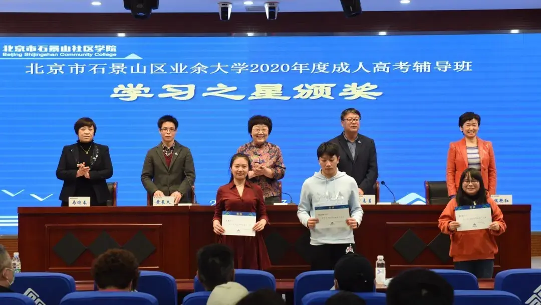 为表彰先进,激励新生,典礼上对获得北京市石景山区业余大学、北京开放大学石景山分校2020年度优秀班干部、优秀学生、学习之星、短视频邀请赛最佳人气奖等127名同学进行表彰。党总支书记于志勇宣读获奖名单,校领导为获奖同学颁发证书。