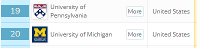 美国上榜大学数量排名第一,高达157所大学上榜, 其中麻省理工学院在美国排第1。上榜大学数量第二的国家是英国,有76所大学上榜, 其中牛津大学在英国排第1。中国上榜大学数量排名第三,共65所大学上榜, 其中中国排名第1是清华大学。在之后的还有, 德国上榜45所, 日本上榜44所, 澳大利亚上榜37所。