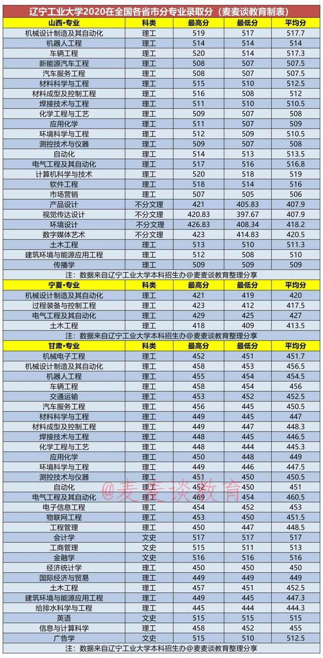 注:文中数据均来自辽宁工业大学本科招生办,麦麦仅作整理,供各届考生填报志愿作数据参考。如有侵权,请联系删除!
