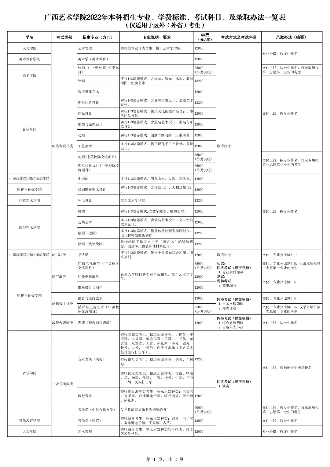 (四)最终录取办法详见后续发布的《广西艺术学院2022年本科招生章程》。