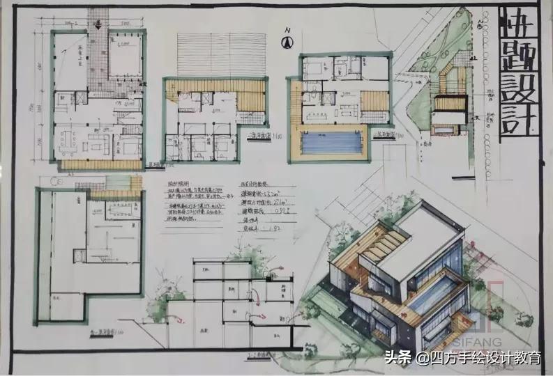 暑假:集训时一天一套快题,尽量不要拖延时间,此时要形成自己的固定风格,学习别人的优秀图纸,并且可以回忆春季看过抄绘过的案例。每晚总结当天图纸,每周总结7天图纸,发现自己的问题并且及时改正。