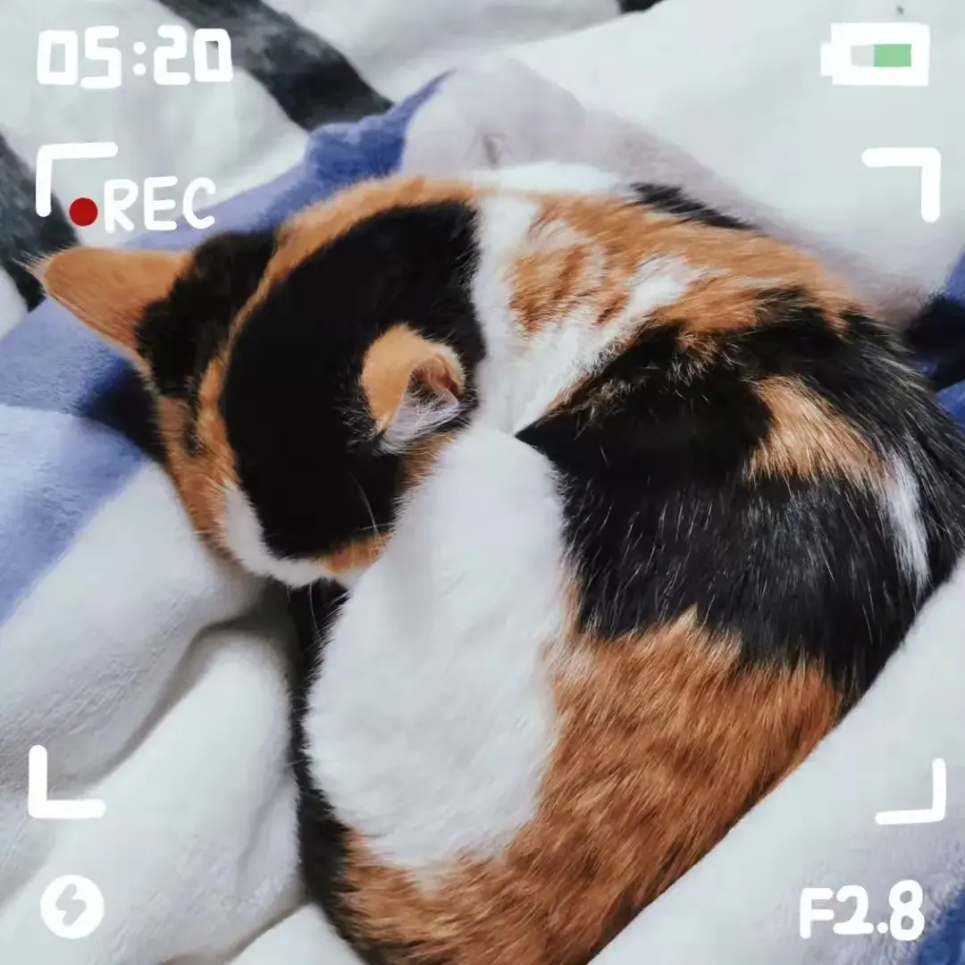 2022年的寒假我们家迎来了一位新成员——大黑鼻子,由于她的主人家离得远就暂住在了我家,她是一只小三花,有一个很明显的特征就是她大大的黑鼻子。我想大黑鼻子一定是只双子座的小猫,因为她时而乖巧的在自己的猫窝一动不动,时而在家里上蹿下跳自娱自乐,时而又变成一个小粘人精偏要进我的被窝(๑><๑)。她睡觉的时候发出呼噜噜的声音可爱极了,每天跟鼻子玩耍成了我和弟弟的快乐源泉,很感谢鼻子给我们带来的陪伴和幸福,希望她可以健康成长。