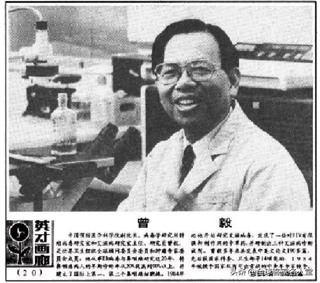 艾滋病是一个凶险的对手,最开始就像纵欲者身上开出的狰狞的恶之花,传染快,百分百致命。在人人谈“艾”色变的时候,曾毅以医学家的胆魄和担当,明知山有虎,偏向虎山行,选择了艾滋病毒作为研究方向。他是第一个分离出艾滋病毒病毒的中国人(1987年),第一个研究出了中国自主产权的早诊试剂,并力促国家建立了艾滋病防控体系,防止这种恶之花在中国泛滥成灾。