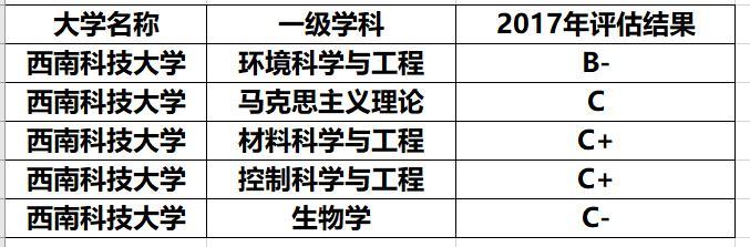 从2017年教育部学科评估看出,西南科技大学的学科并没有特别强,但是其环境科学与工程专业也是高星级专业。