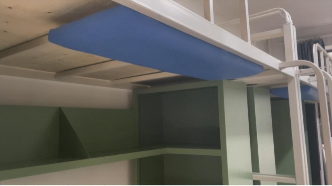 今年暑假,北林将学6号楼西侧新增为新生公寓。原木色桌面与豆绿色柜体搭配,打造出简约清新的居住空间,给人以贴近大自然的舒适感。床头尾配有U型可伸缩蚊帐杆,床尾护栏可展开延长床板使用长度,还有床板下方的软装护头板、床梯脚踏板的防滑设计……每个人性化的“细枝末节”之处,都饱含着学校对学子纯朴真挚的爱意。