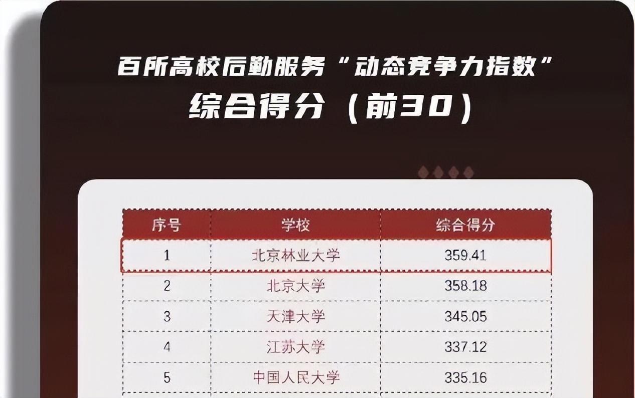 2022年6月,北林获百所高校后勤服务“动态竞争力指数”综合排名第一