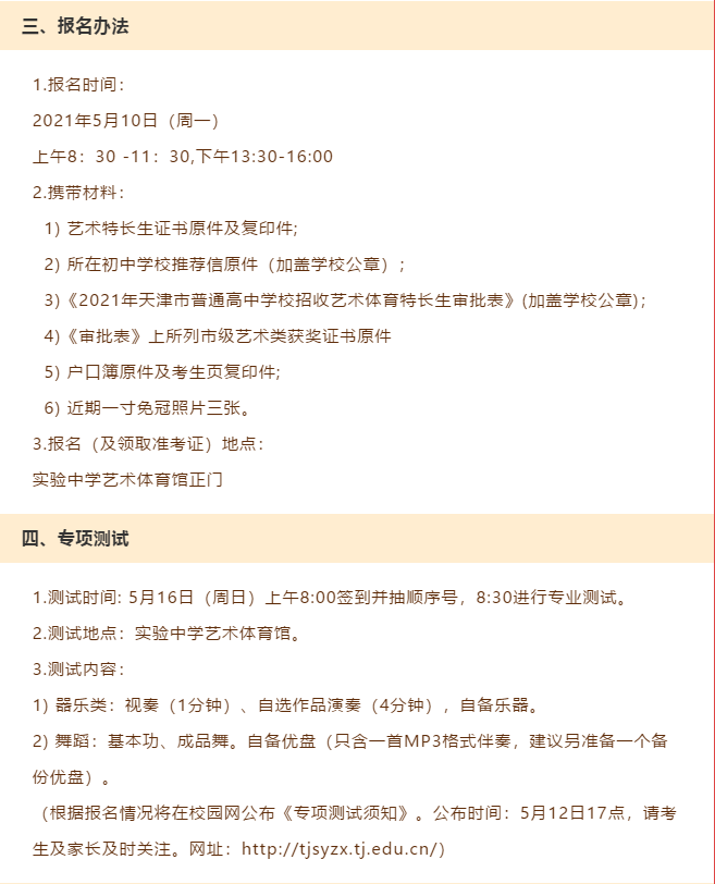 就在今天,天津实验中学正式发布了2021年高中入学对于招生艺术特长生的招生简章,想要报考的同学快来看看吧。