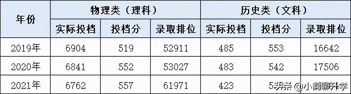 从录取排位看,新高考实施后,物理类的录取排位61971,下降明显,幅度约9000名,推测原因是广工大招生基本囊括了工科的冷门专业如生物类、化工类,导致末位排名选择性下降。历史类排位则非常稳定,3年均在17000名左右。