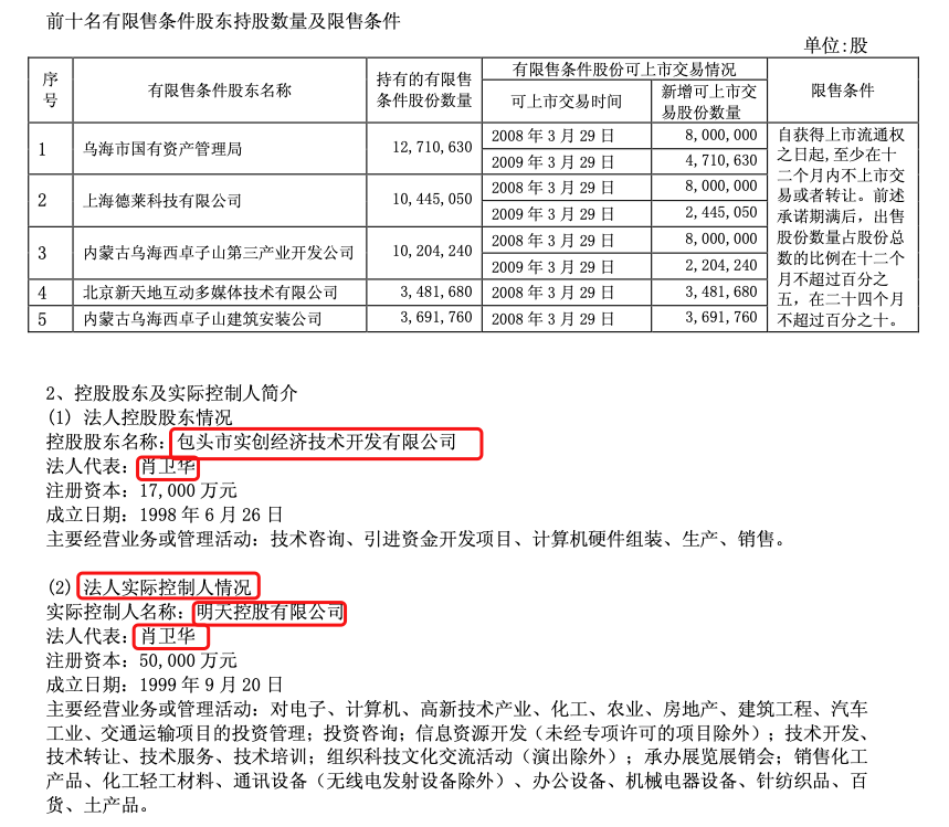 2007年西水股份的年报中可以看到,西水股份的实际控制人从乌海市国资公司变更为明天控股。而持股公司中的内蒙古乌海西卓子山第三产业开发公司还占有恒泰证券8800万股股权。