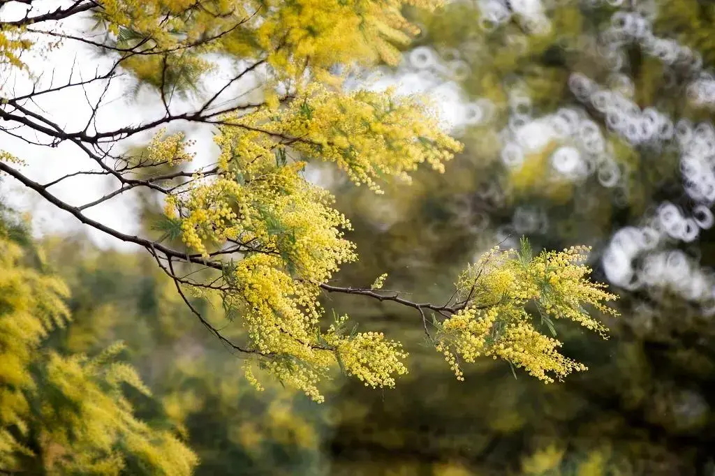 后山农场的合欢树也不甘落后,金合欢满树繁华,如焰火绽放,细细小小的绒球缀满枝头,一直开在高空。