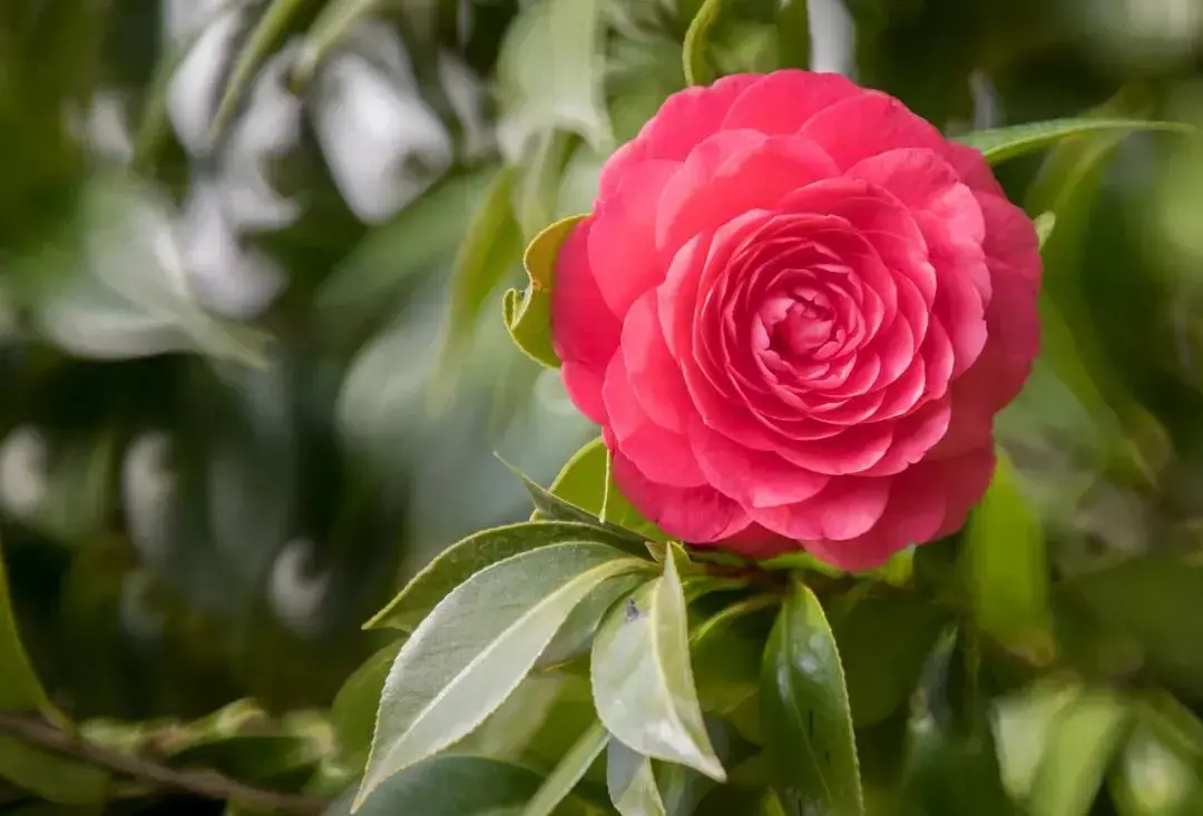 逸夫楼旁的山茶枝叶也是非常清秀,粉妆玉琢,花瓣层层叠叠像姑娘的裙摆一般。