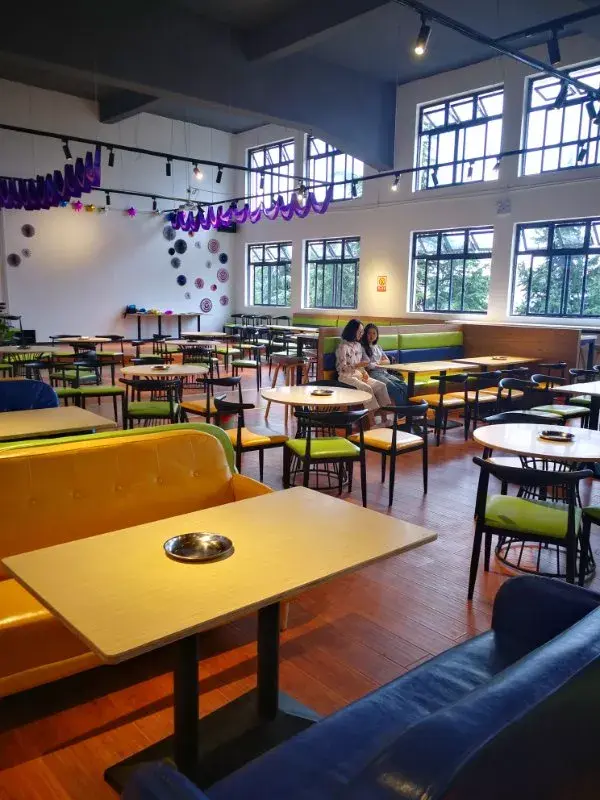 云南农业大学最新款食堂——稻香园(二食堂)绝对能满足你所有的幻想,整个装修风格颇有一股英伦风,最让人心动的就是四周安装了大面积的窗子!