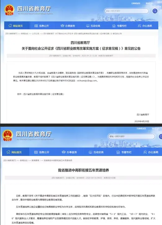 四川省《关于推进中高职衔接五年贯通培养工作的通知》等职业教育的利好文件也相继出台。