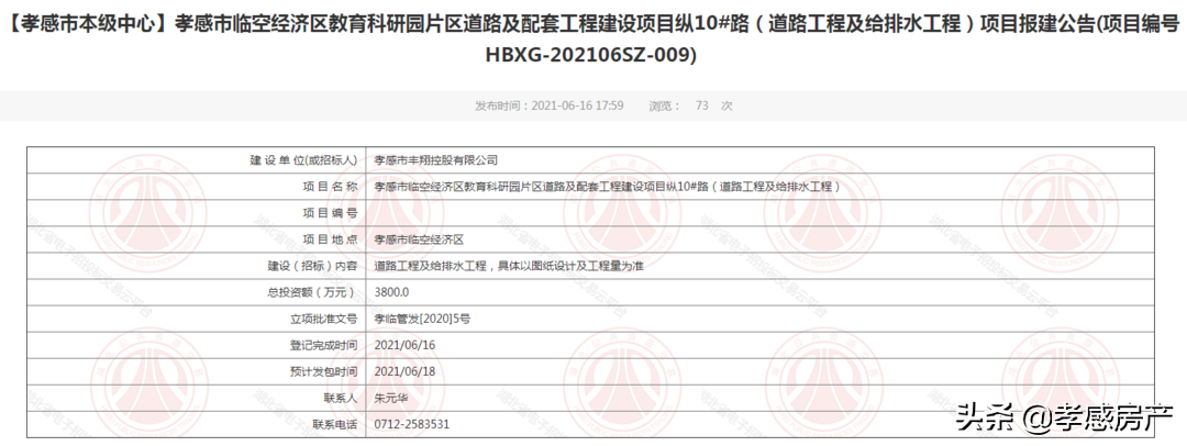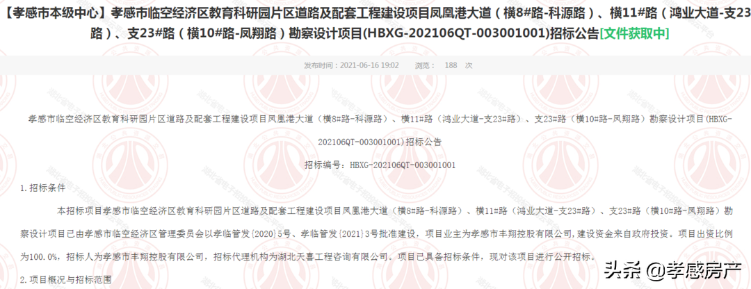不仅如此,孝感市临空经济区教育科研园片区道路及配套工程建设项目纵10#路(道路工程及给排水工程)也将建设。