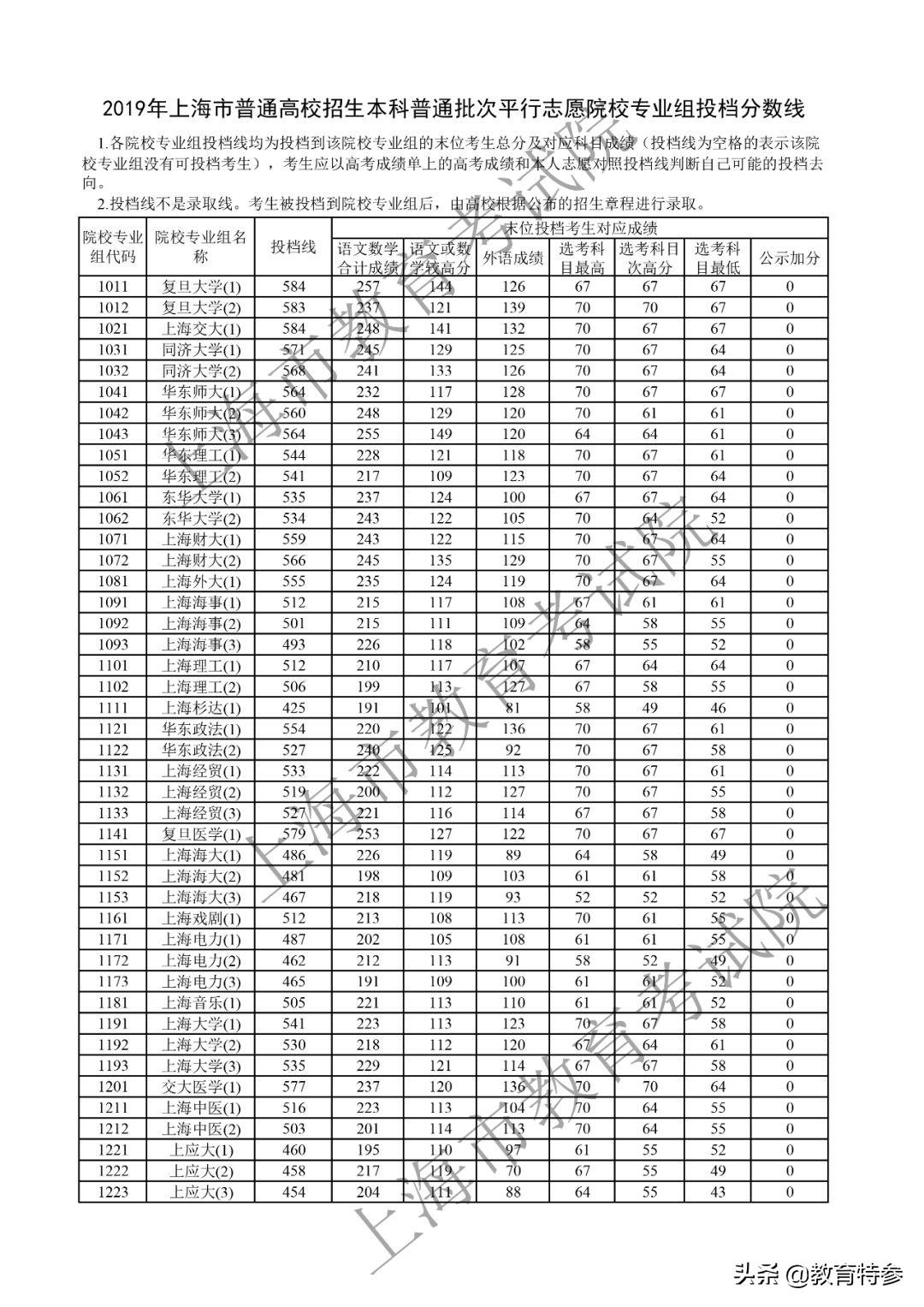 上海录取投档线