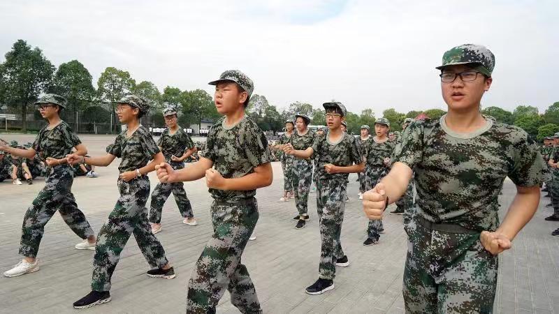 稍息、立正、齐步走……8月23日至28日,天府新区永兴中学初一与初三年级学生走出校内课堂,来到成都国防教育基地开展国防教育实践活动。这五天,同学们"热血"十足,以饱满的激情,高昂的斗志投入到军事训练中。