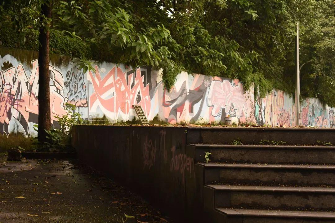 面对江边,从江边的左边走,你可以看到跑道,南宿舍,室内羽毛球馆,足球场,还有涂鸦墙