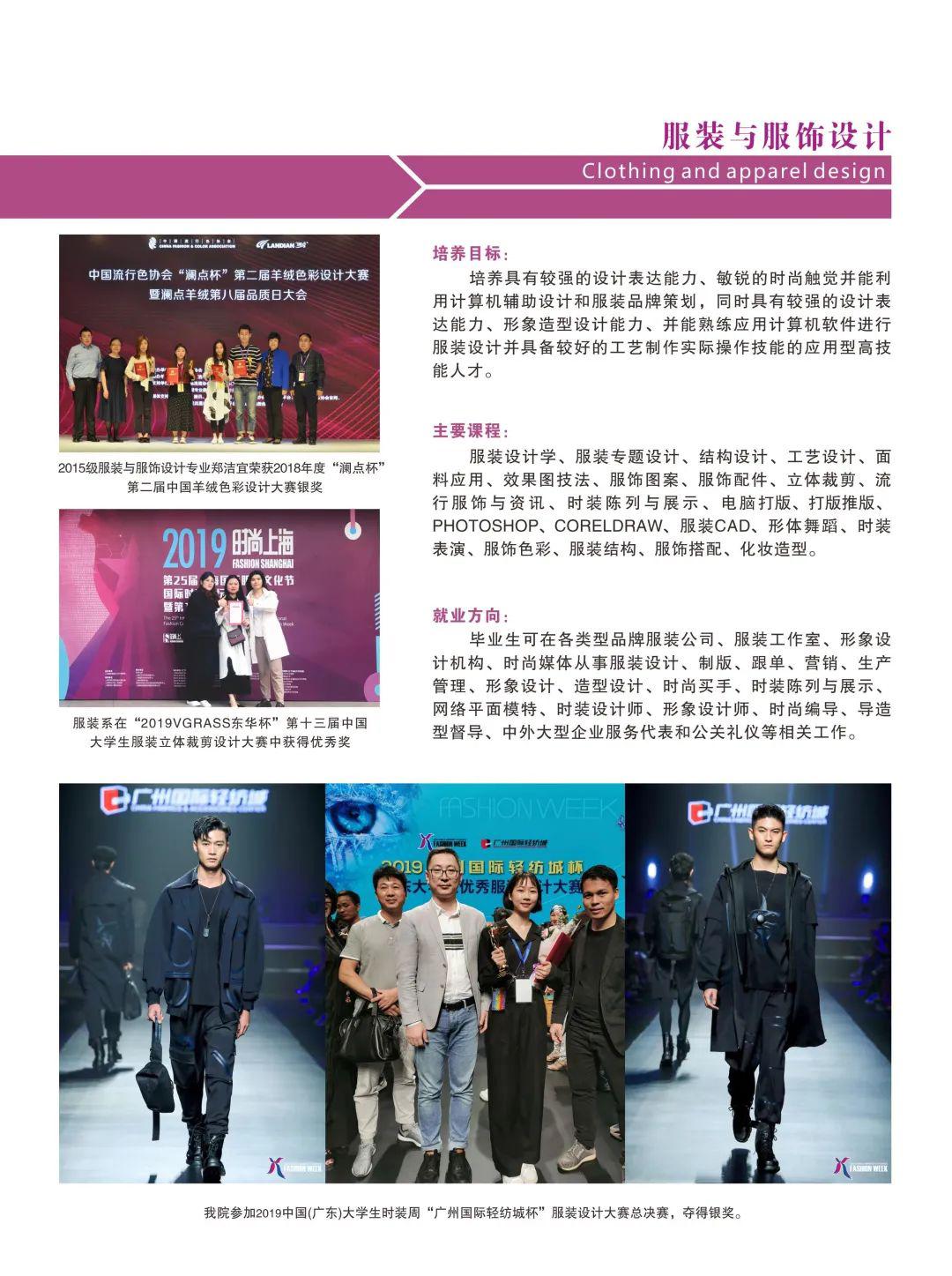 重视培养学生的优良品德,学院老师和学生设计的作品多次荣获国家、省市级服装、室内装饰等大型竞赛的金、银等各类奖项。
