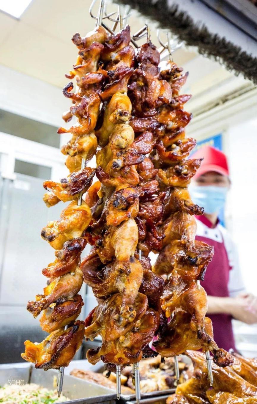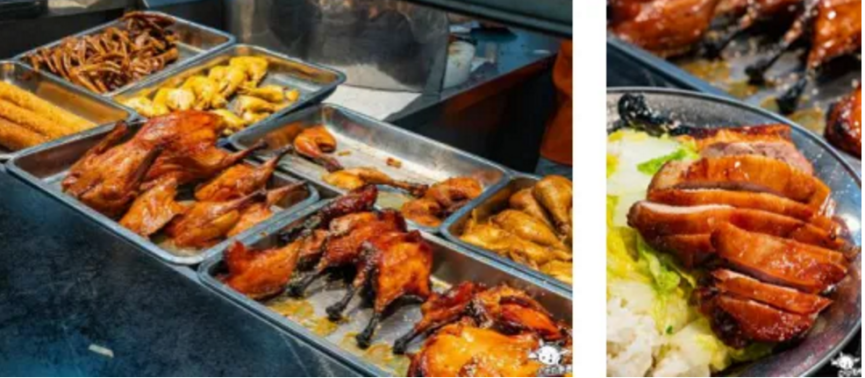 在二楼的鸡公煲、蛋包饭、叉烧面、麻辣烫让人流连忘返。还有旁边的烧腊档,造型十分抢眼,十块钱就能管饱。