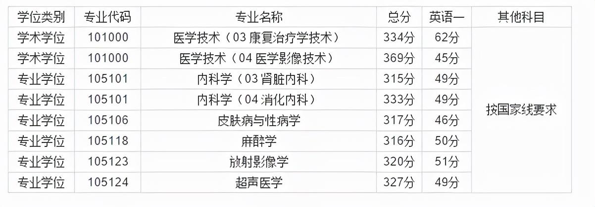 2.报考“退役大学生士兵专项计划”考生进入复试的成绩要求为:在2020年国家复试分数的基础上,单科降分10分,总分降分60分。附2020年国家线: