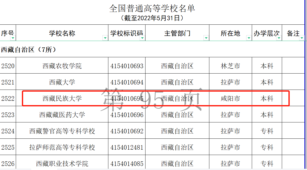 西藏共有7所普通高等学校,但只有六所位于西藏,另一所位于陕西咸阳。西藏民族大学的前身是创建于1958年的“西藏公学”。