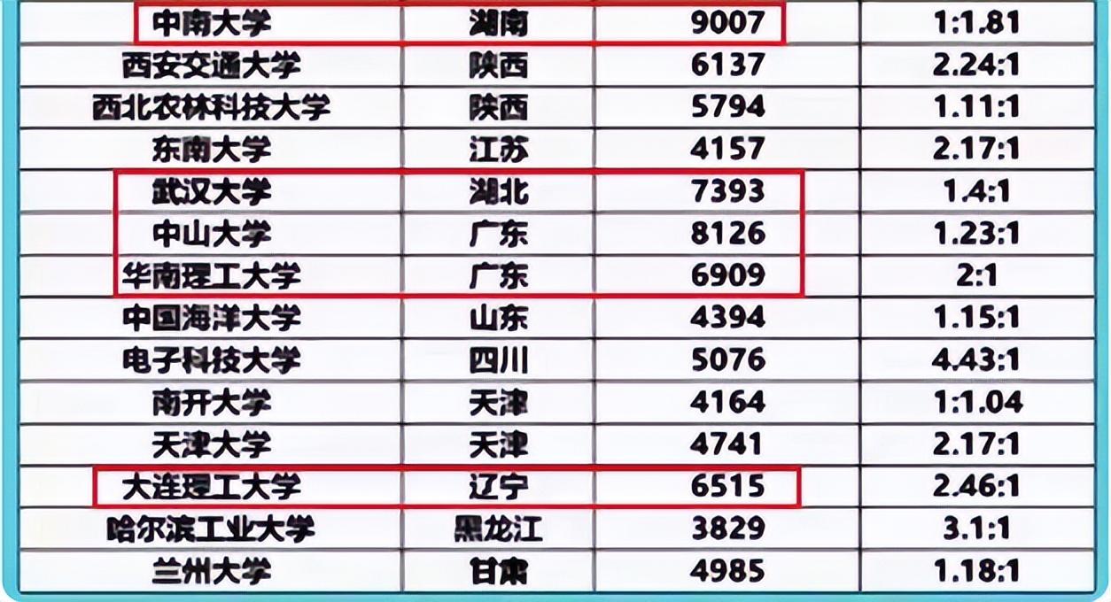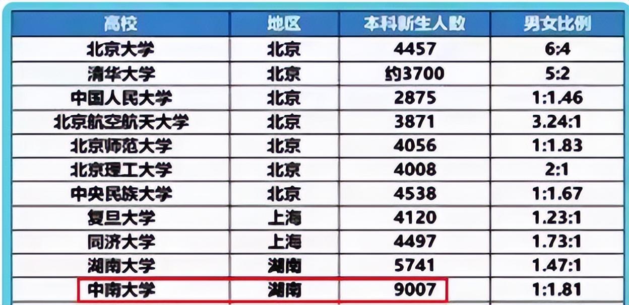 学生要想知道985名校对于学生的偏爱程度如何?从985名校录取的本科新生人数都是可以完全看出来的,中南大学是榜首的位置。