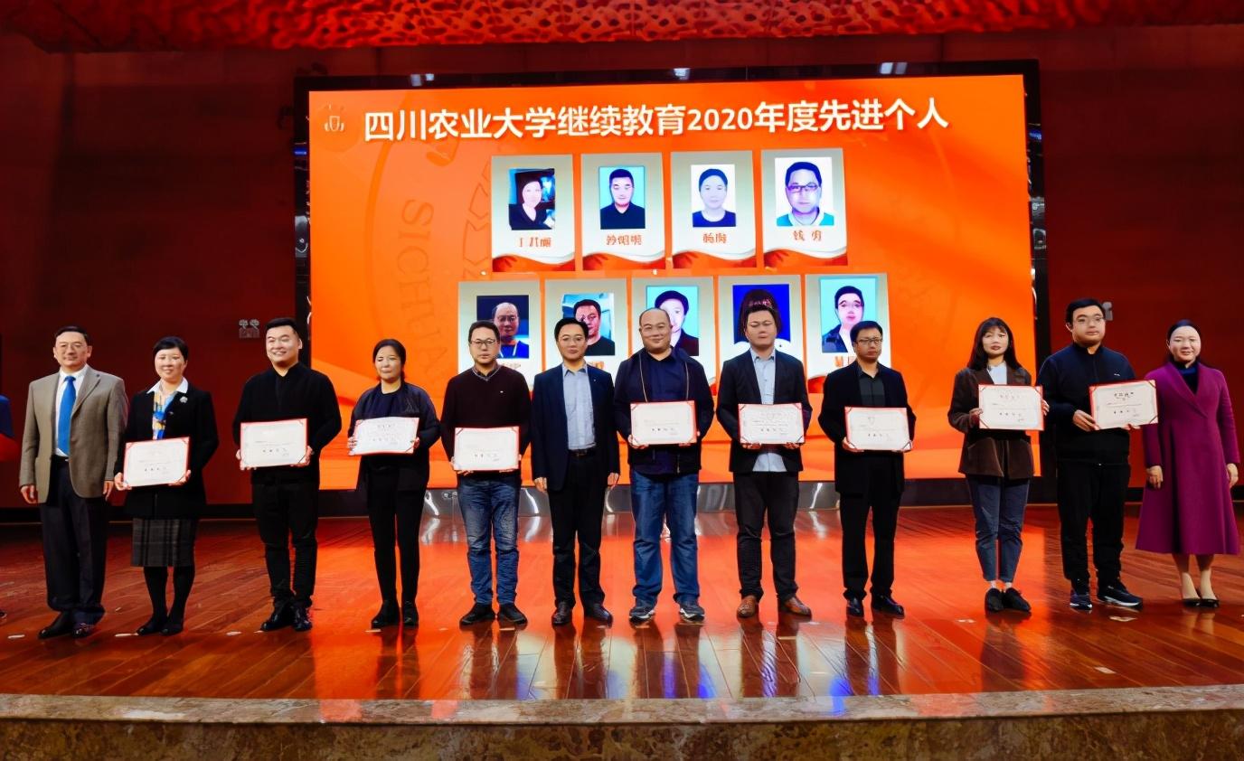 颁奖环节,舒敏宣读“关于表彰四川农业大学2020年网教成教自考联合办学先进集体、先进个人的决定”。陈代文及黄晓俐、马恒东为先进集体和先进个人代表颁发奖牌、获奖证书。