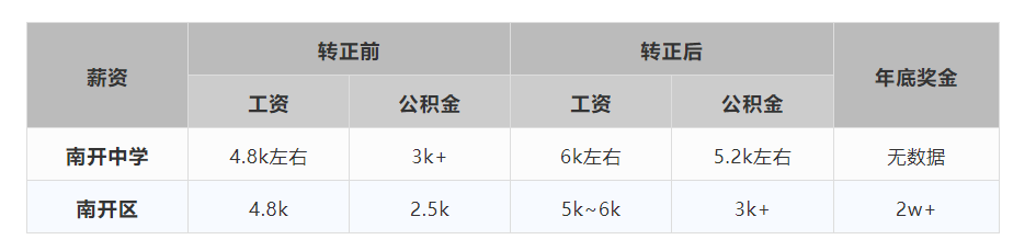 注:南开中学薪资数据为小编调查的“市五所”其中一所学校的薪资数据,仅供参考。