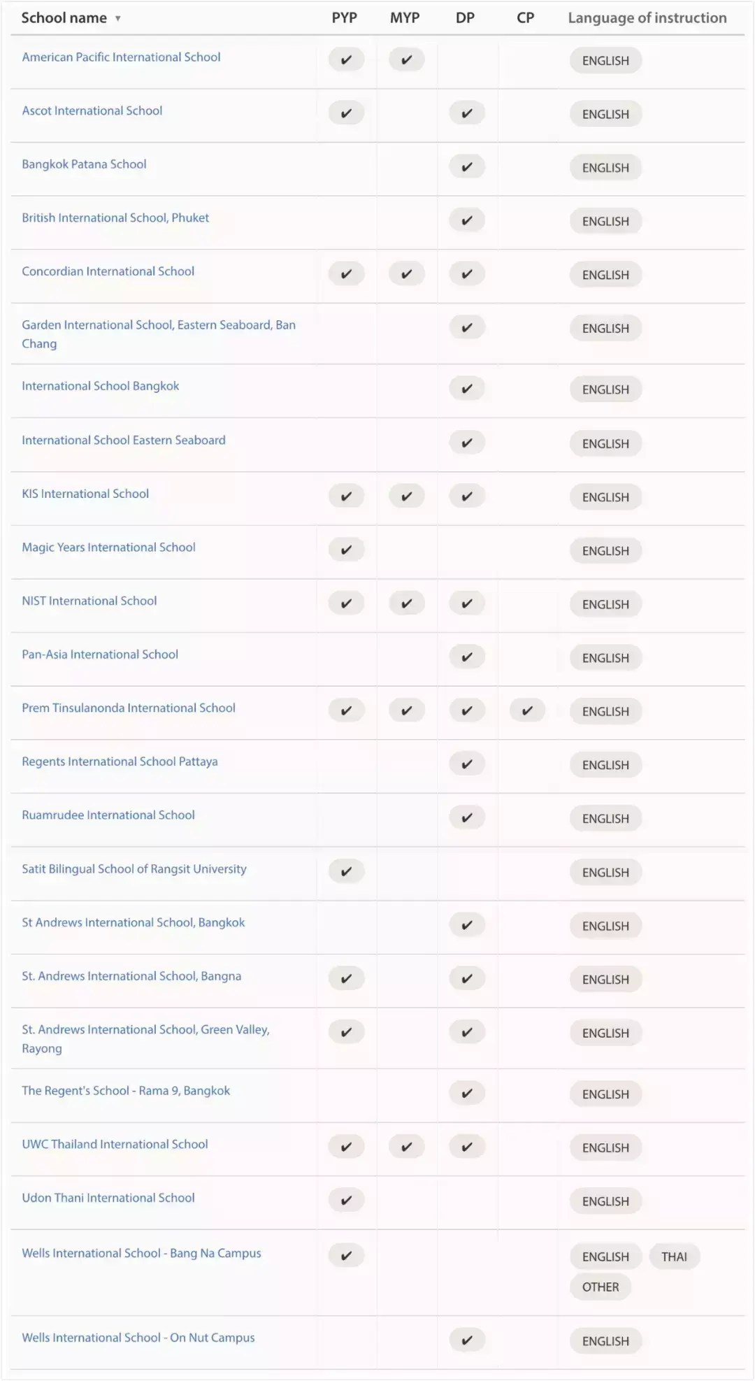 24所泰国提供IB课程的国际学校总名单|截图自IBO官网