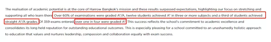 对比而言,哈罗曼谷2018届学生中,有64%获得IGCSE学科考试的A*和A;三分之一的学生取得全科A*或A的A Level成绩,41%的学生得到三门或以上的A*或A。在7名获得全科A*的学生中,一名被牛津大学录取,两名录取宾夕法尼亚大学,以及一名录取伦敦政经学院。