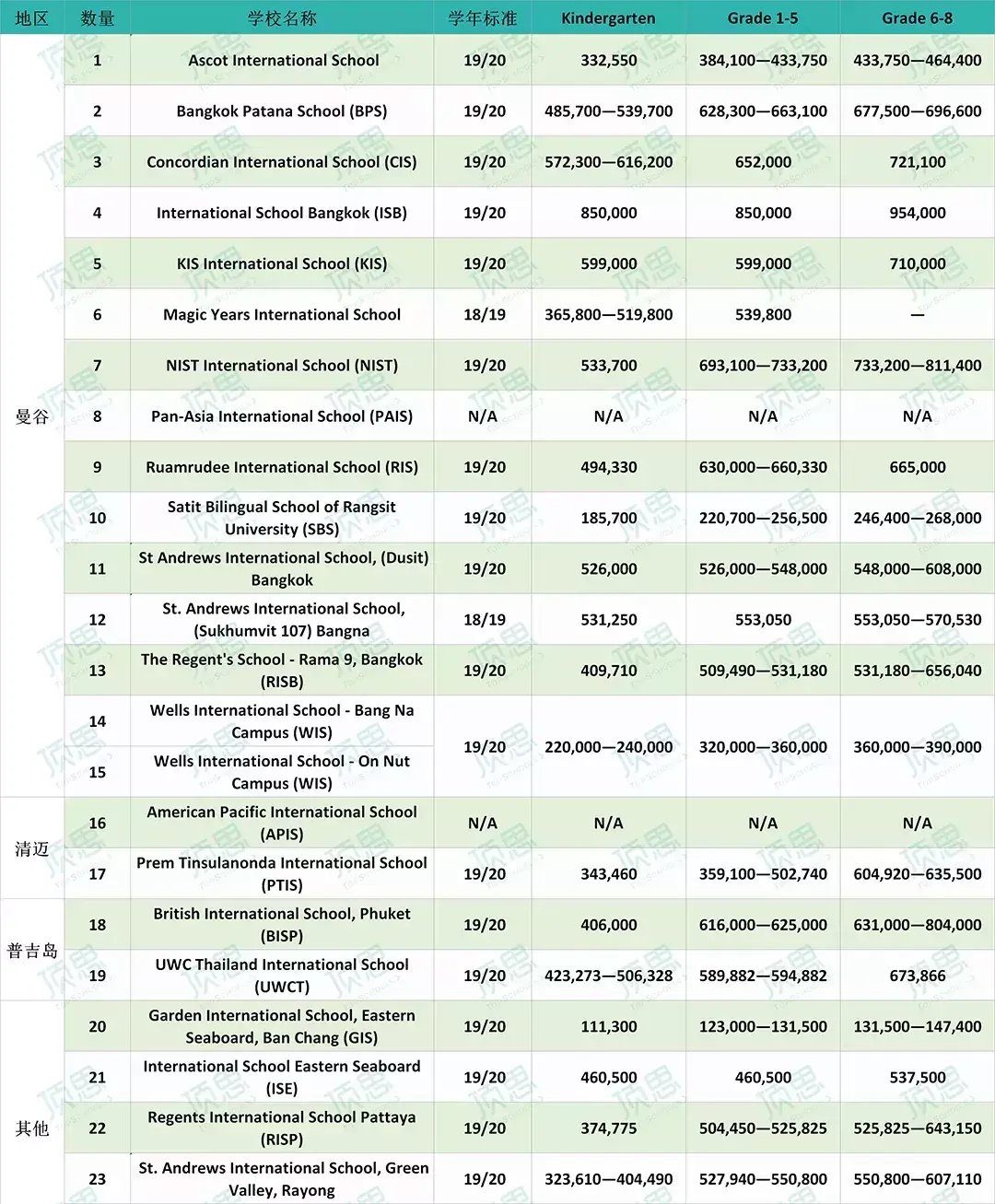 根据泰国国际学校协会(International Schools Association of Thailand)的统计,迄今为止,泰国已有143所国际学校,其中60%左右的学校分布在曼谷地区。此外,清迈、芭提雅及普吉岛等大家熟悉的旅游胜地也同样聚集了不少比肩欧美教育水平的优质国际学校。