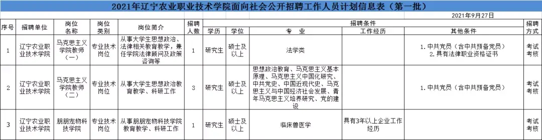 B辽宁农业职业技术学院2021年面向社会公开招聘工作人员公告