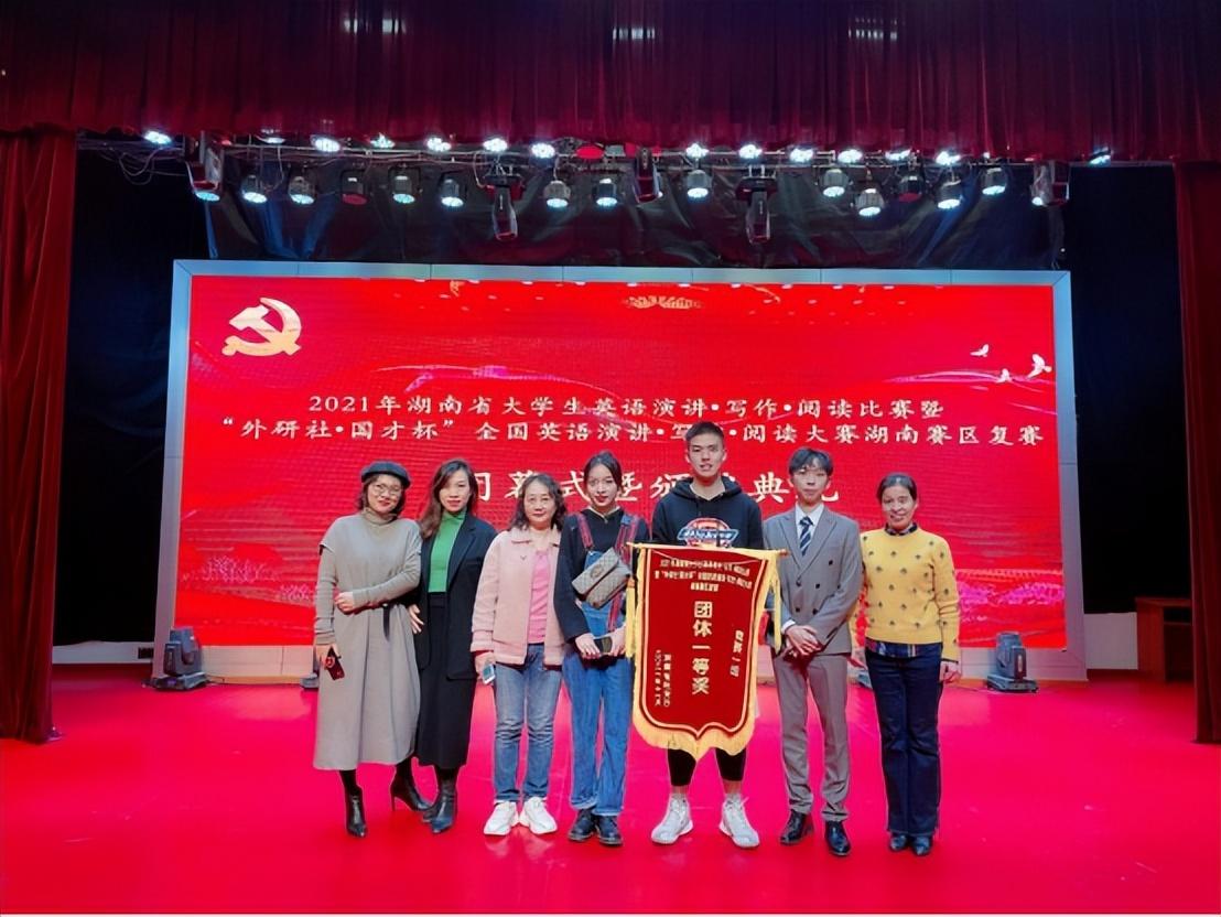 近年来,学院学子参与学科竞赛硕果累累,英语专业学生获第三届全国商务英语实践大赛总决赛团体冠军,指导本科生获湖南省大学生英语演讲比赛团体一等奖11次,获全国大学生日语演讲比赛一等奖1次、湖南省一等奖3次。2021年,英语1901程龙、英语1902陈天龙在湖南省大学生英语演讲•写作•阅读比赛中取得佳绩;日语专业董龙杰同学荣获“热LOVE新湖南”2021湖南省线上英语短视频大赛冠军……