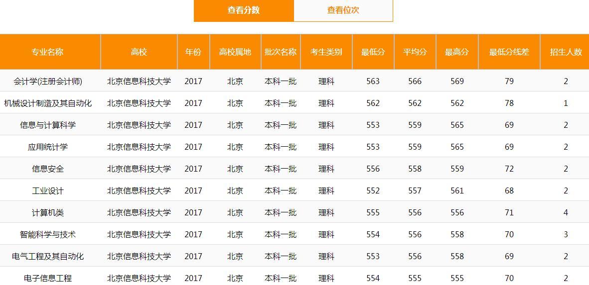 以下是高考科代表为大家提供的北京信息科技大学部分专业2017年在河南省的理科录取分数,以供参考: