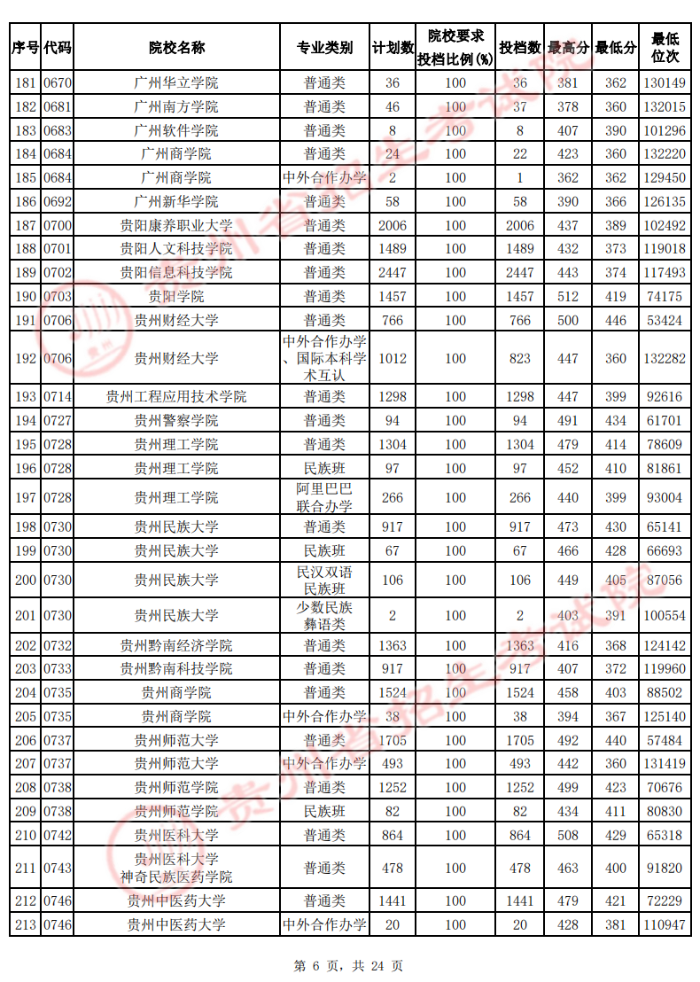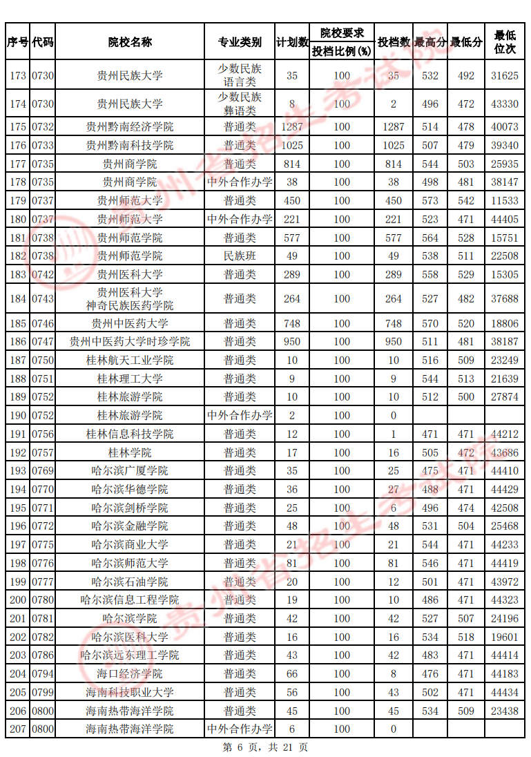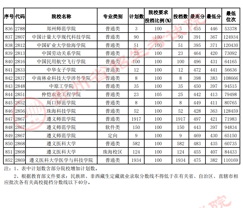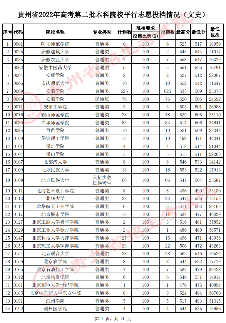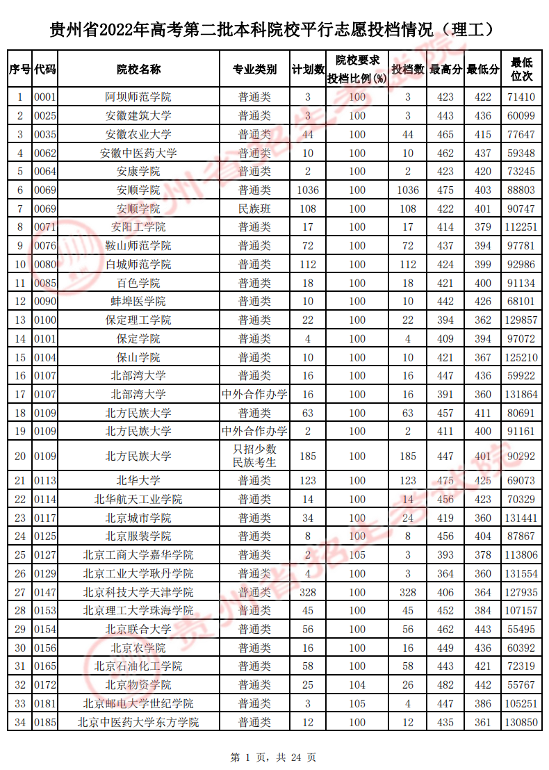 7月26日,贵州省招生考试院公布“贵州省2022年高考第二批本科院校平行志愿投档情况”。详细如下: