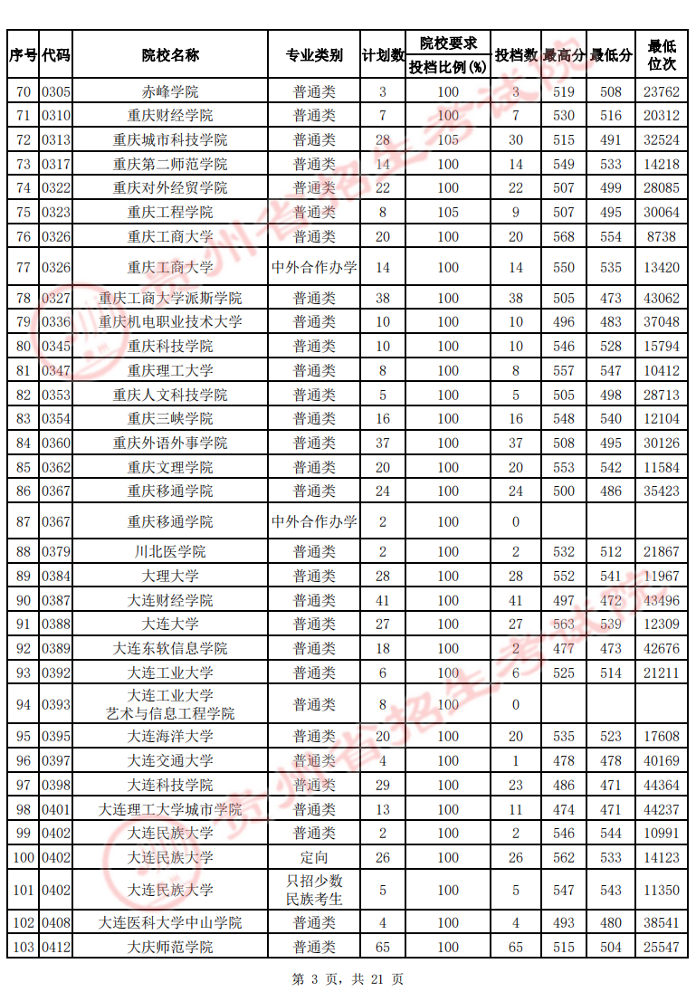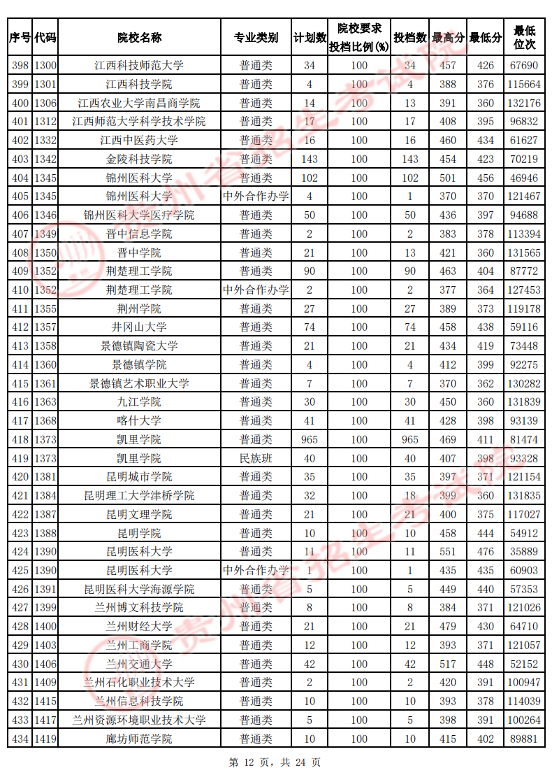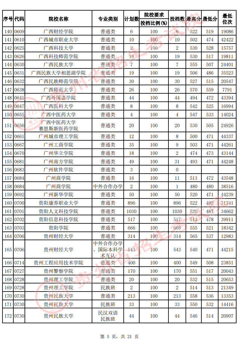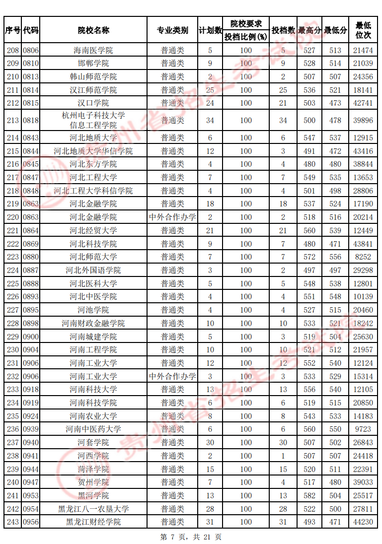 7月26日,贵州省招生考试院公布“贵州省2022年高考第二批本科院校平行志愿投档情况”。详细如下: