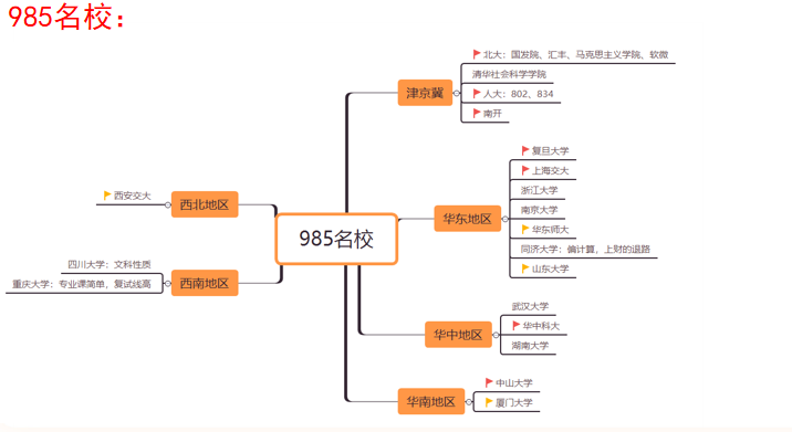 如果考生特别看中985院校,但担心报考前面所列的985顶级名校和985中等院校考不上,可以考虑报考一些985普通院校。