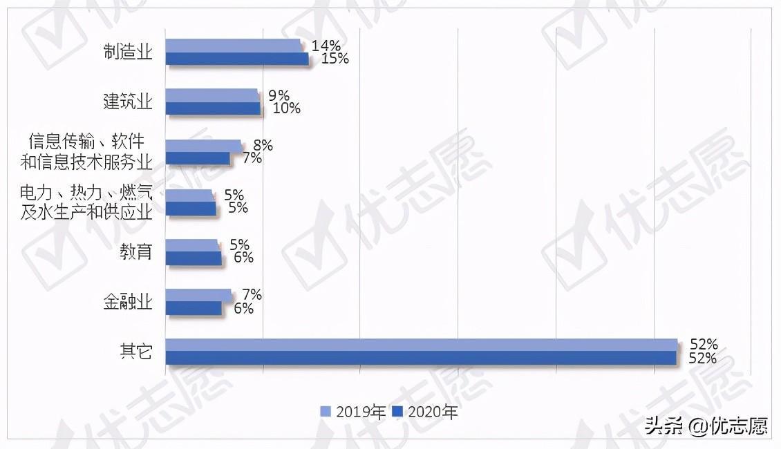 广西大学属于综合型高校,毕业生就业行业较为分散,其中图3. 2019-2020年广西大学本科毕业生就业行业