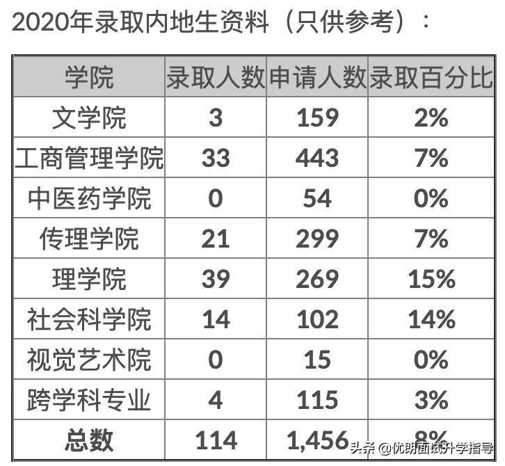 申请人高考成绩达到最低入学要求,才有机会获邀参加面试。由于名额有限,各专业竞争激烈,面试分数线会因不同专业的情况往上调,只有少数成绩卓越的考生可获面试安排。