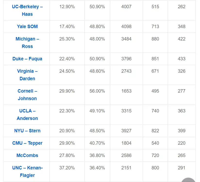 每年都有很多人想要进入顶尖院校进行MBA学习,但是相对于比较出名的大学来说,竞争力越演越烈,比如哈佛大学去年的报考人数就高达一万人,录取率仅为9.9%;当然,一些院校的录取率是比较可观。