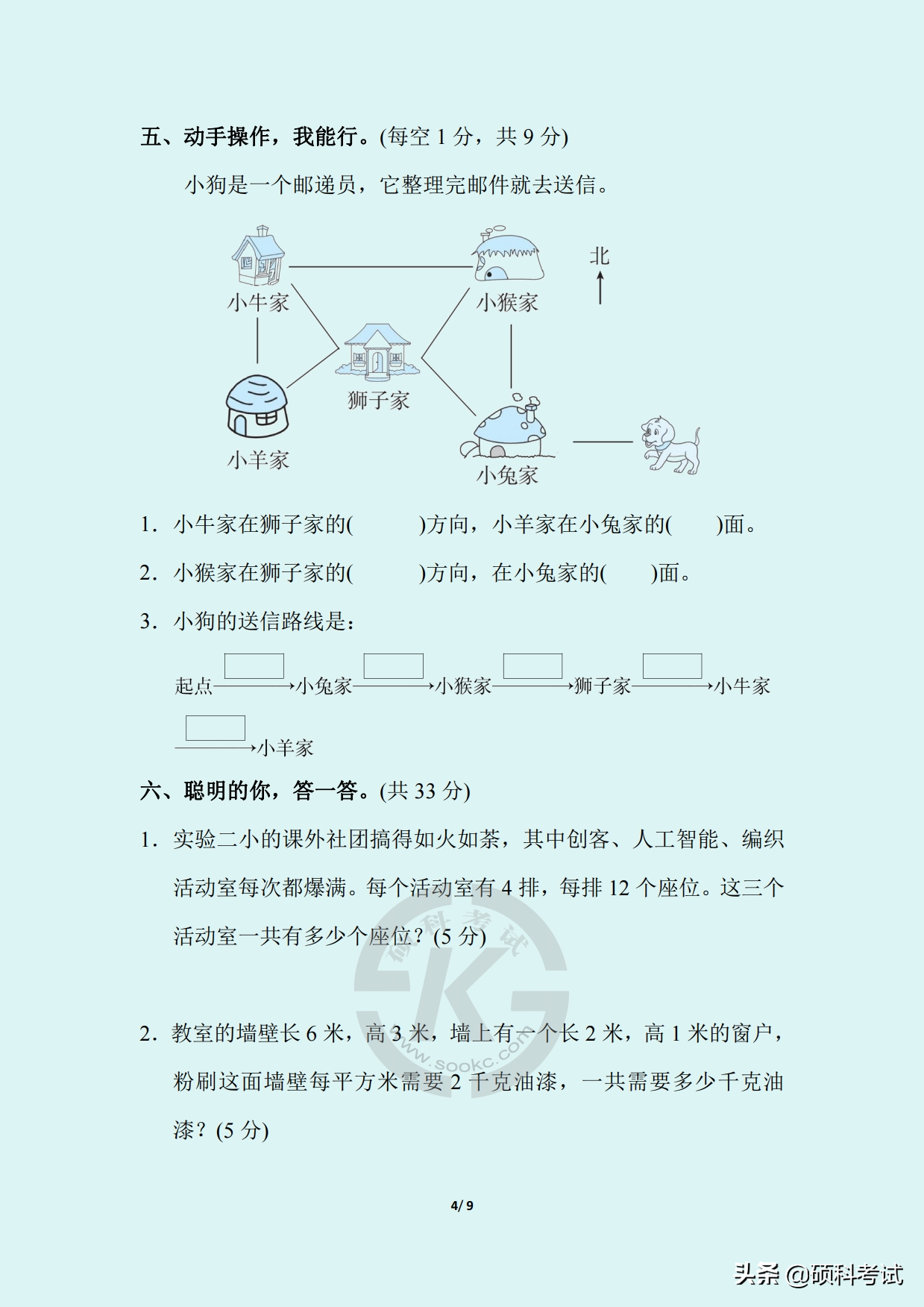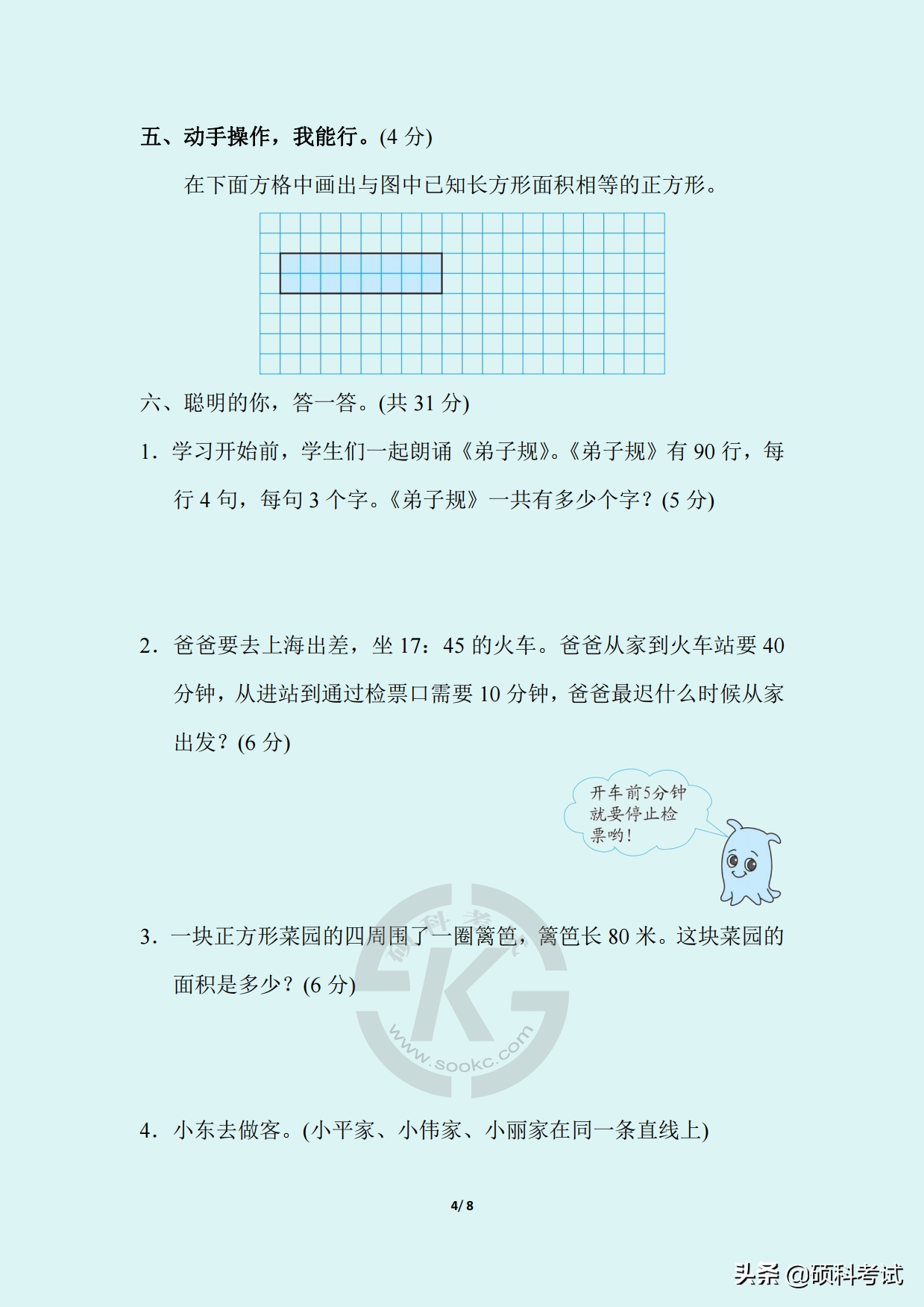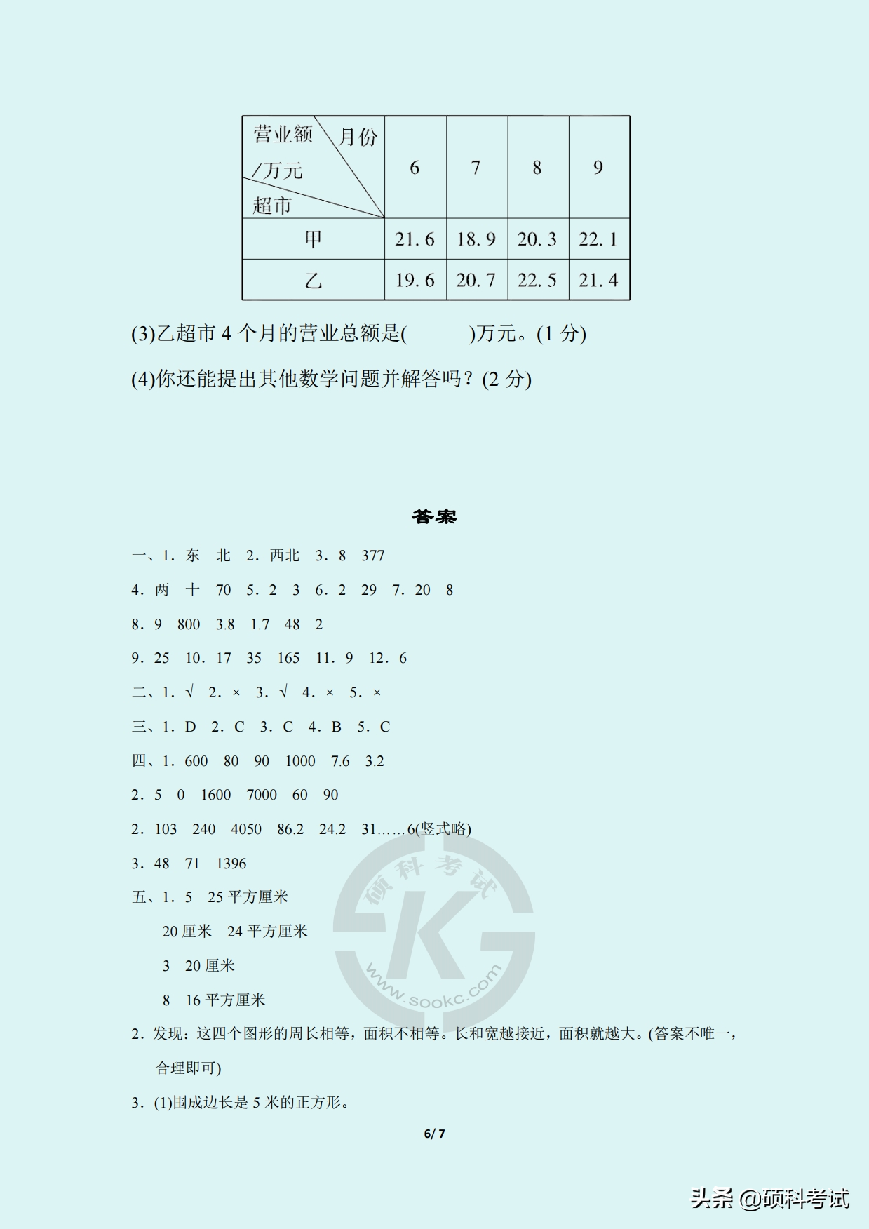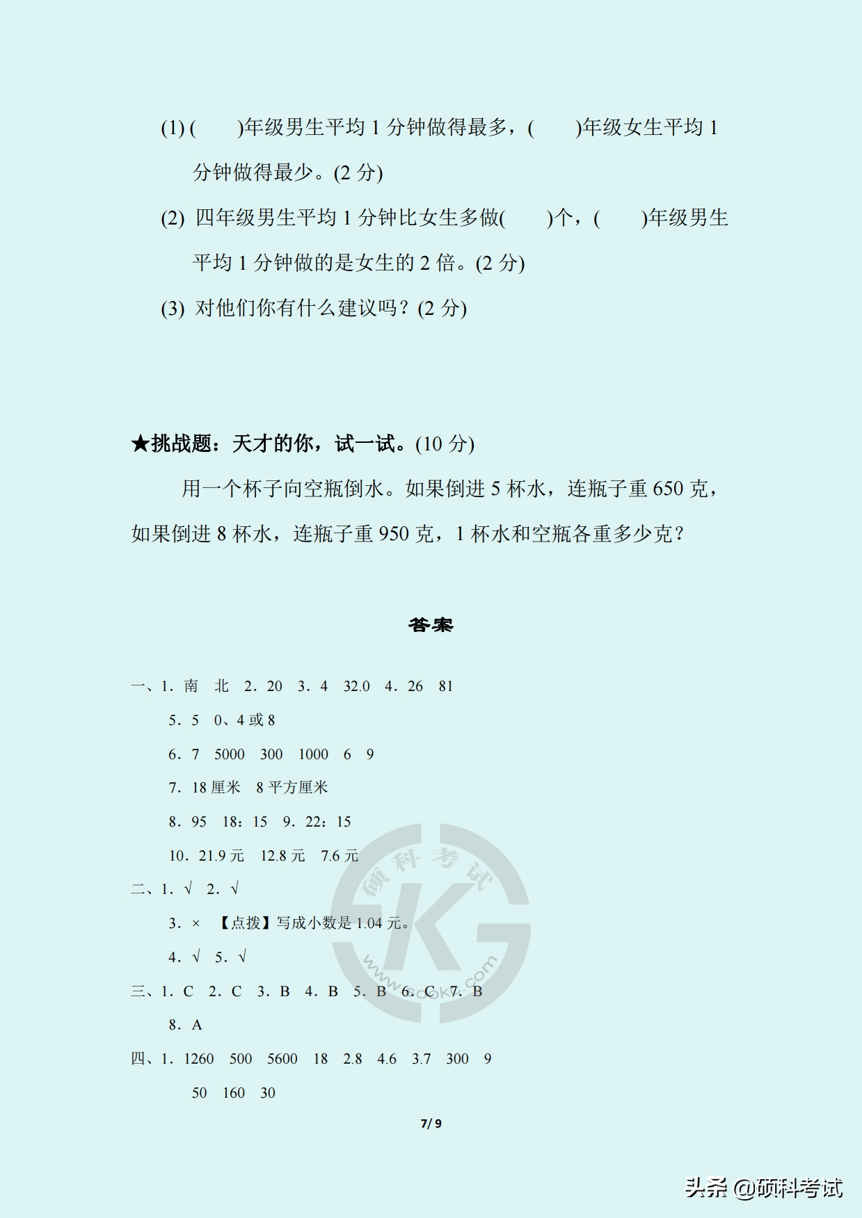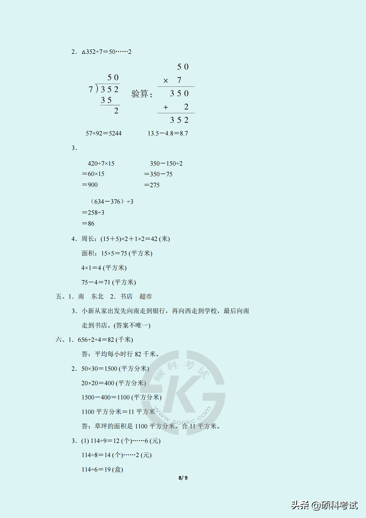 人教版三年级下册数学期末模拟卷五套,主要包括:填空、判断、选择、计算、动手题及聪明题,需要空白卷的可@硕科考试主页查看,有三年级生的家长可以给孩子考前复习,巩固基础,查缺补漏,争取期末拿满分!