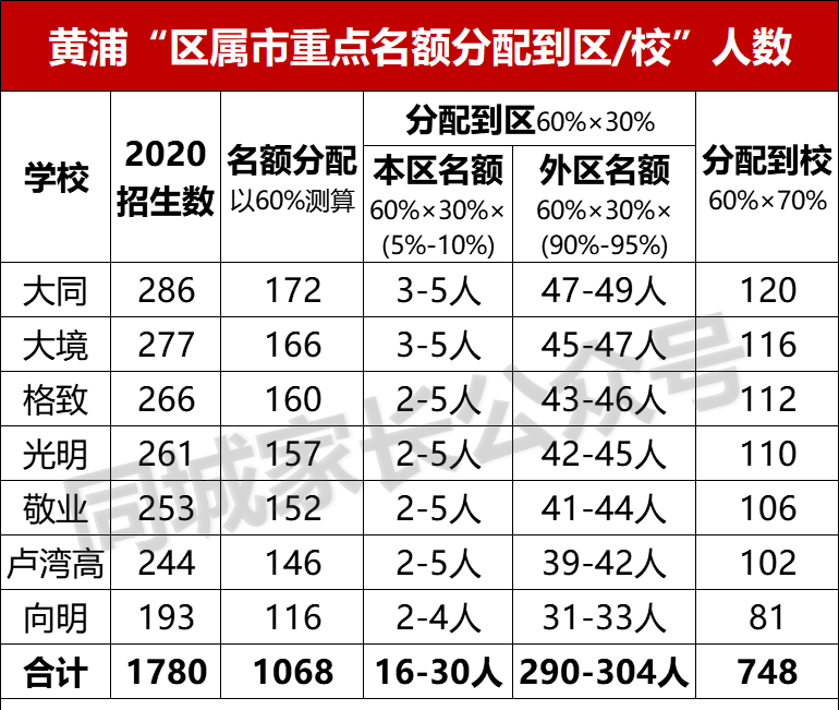 我们来看看黄浦区几所市重点的新中考分配情况: