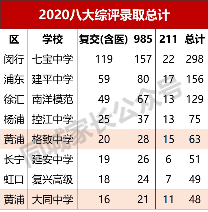 从985/211大学综评录取情况来看,作为八大的格致、大同的表现并不突出。