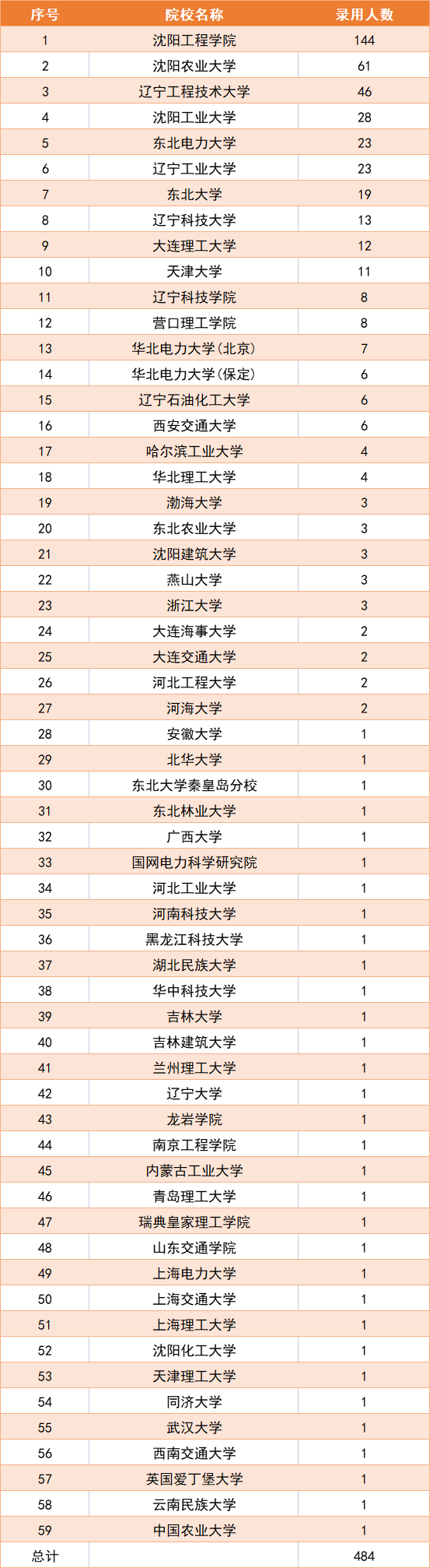 我们从国家电网了解到,辽宁电网今年共录用了484人,较比以往,扩招人数214人。我们从官方公布的数据来看,录用人数最多的就是沈阳工程学院,人数为144人,占录用总人数的30%,优势明显。第二位的是沈阳农业大学,录用人数为61人。由此可见,沈阳工程学院是碾压其他高校的,人数遥遥领先。