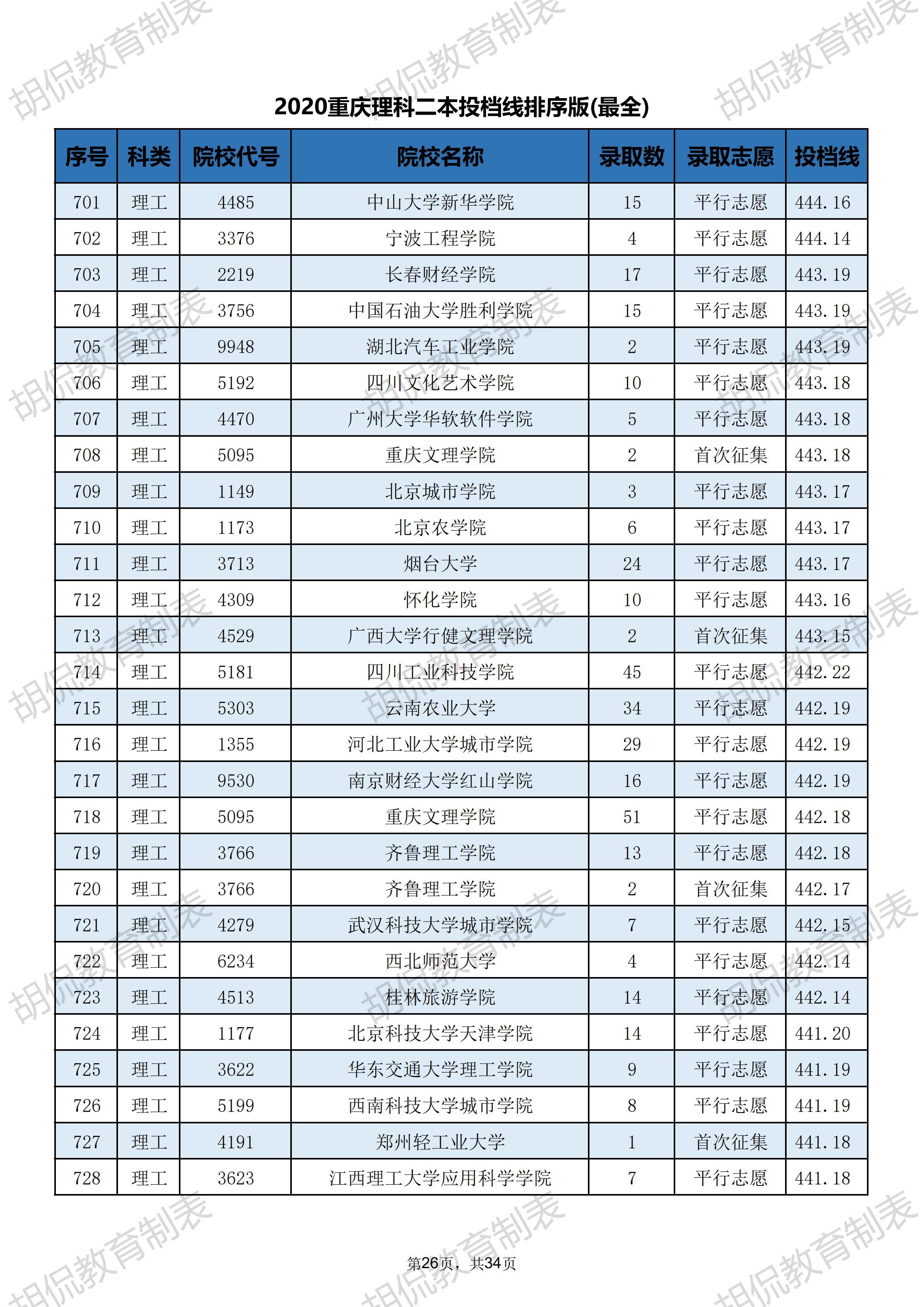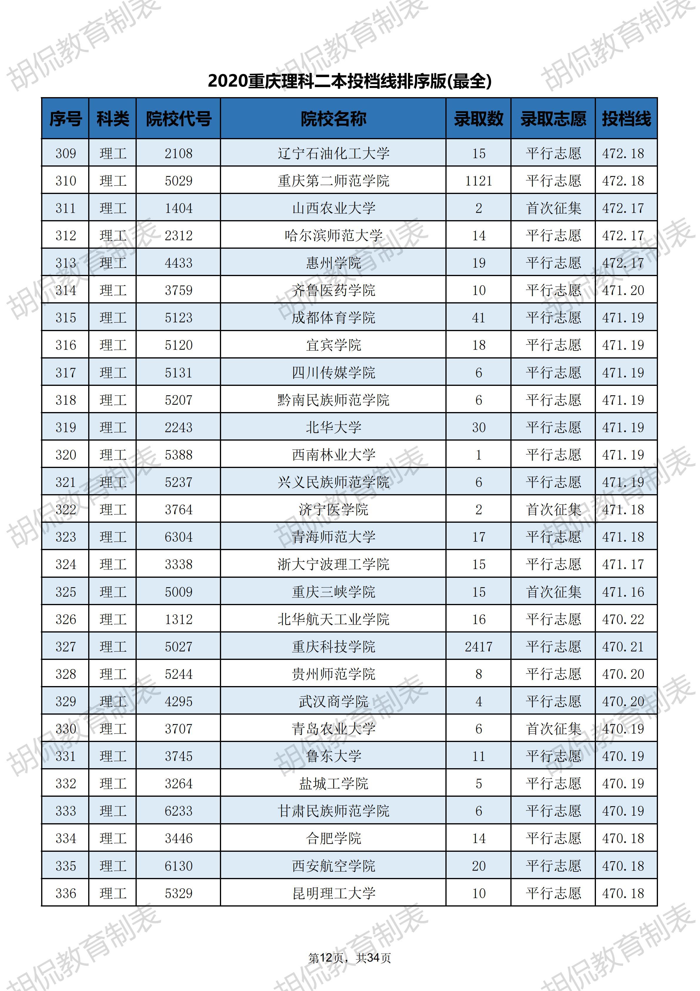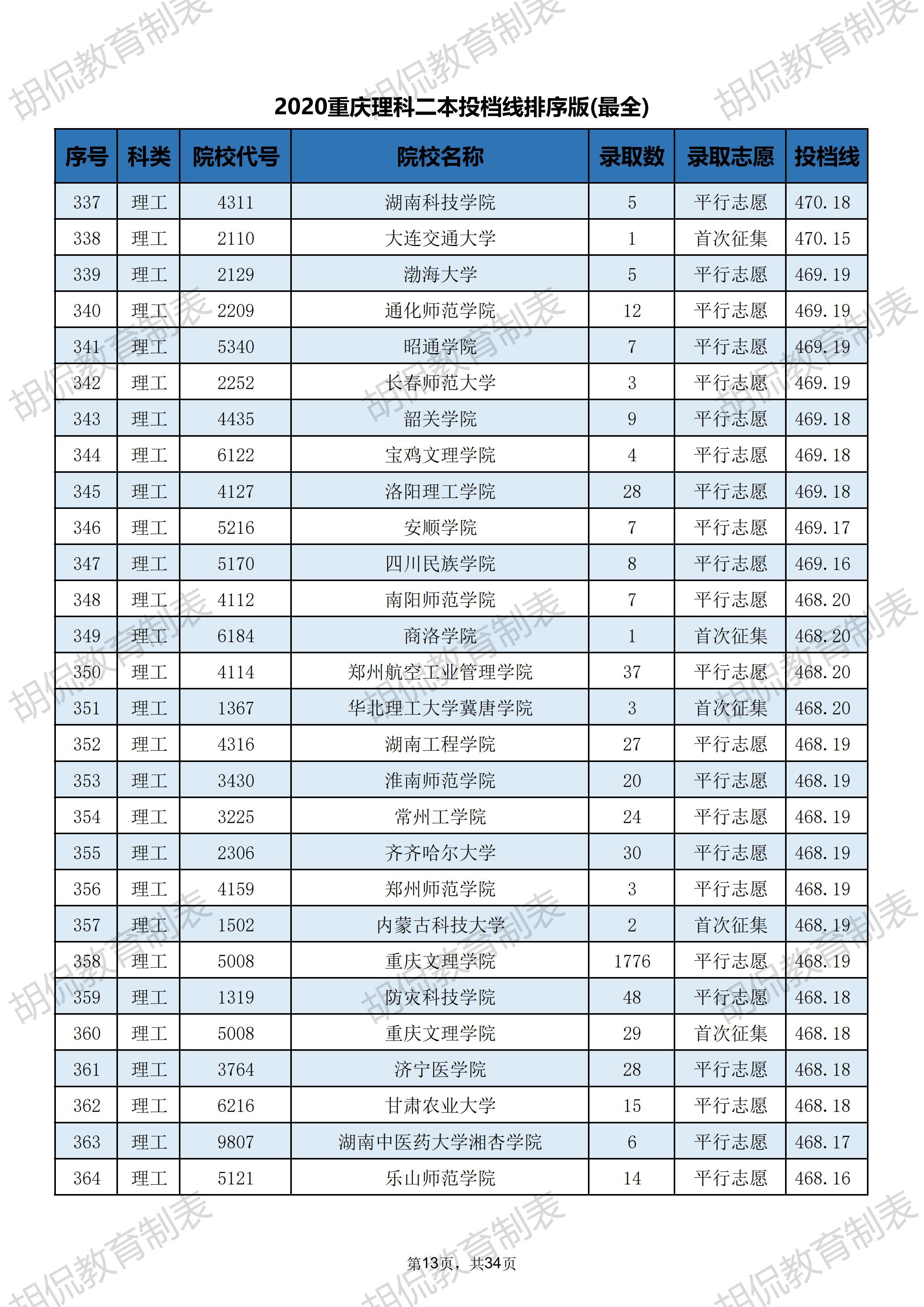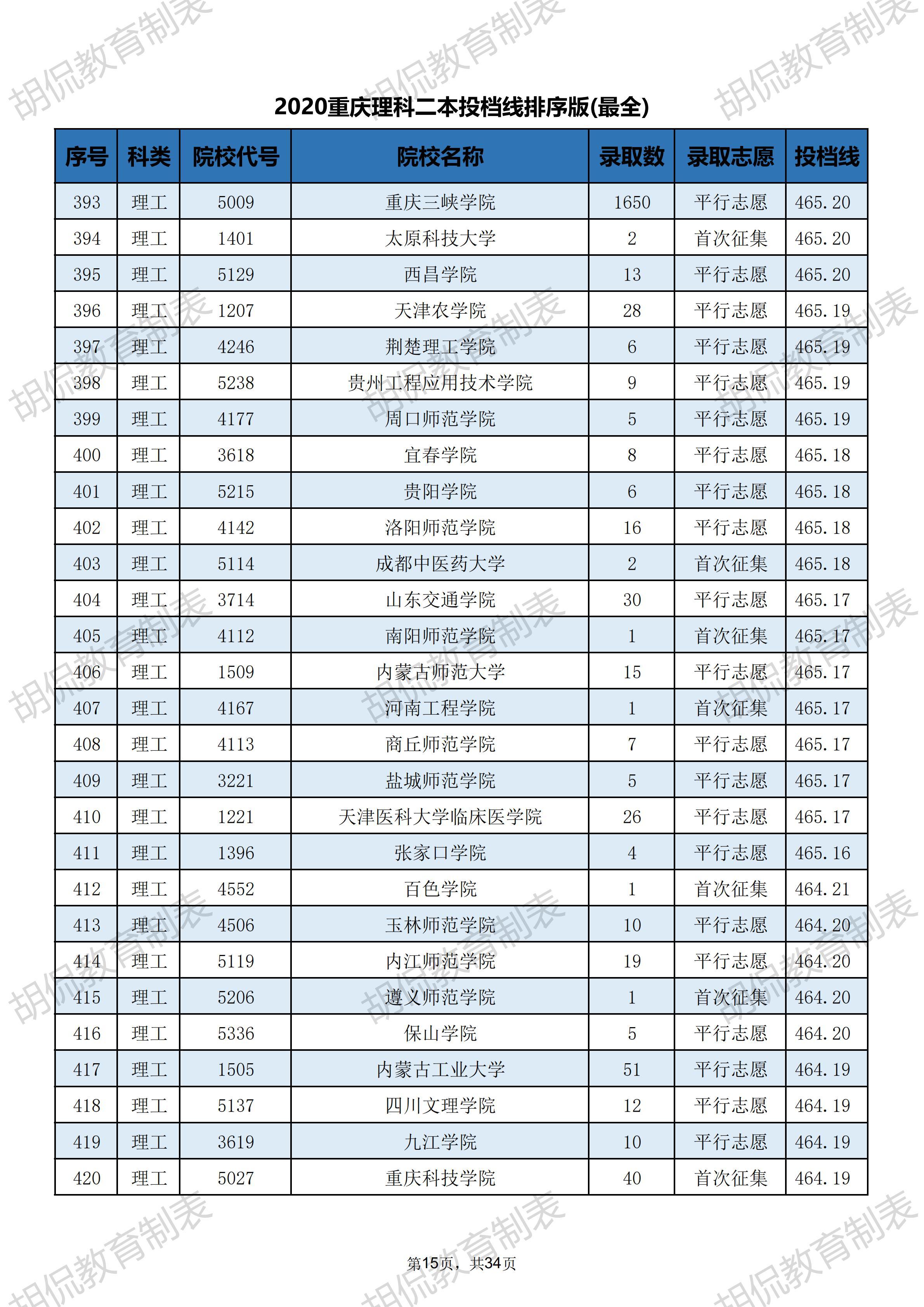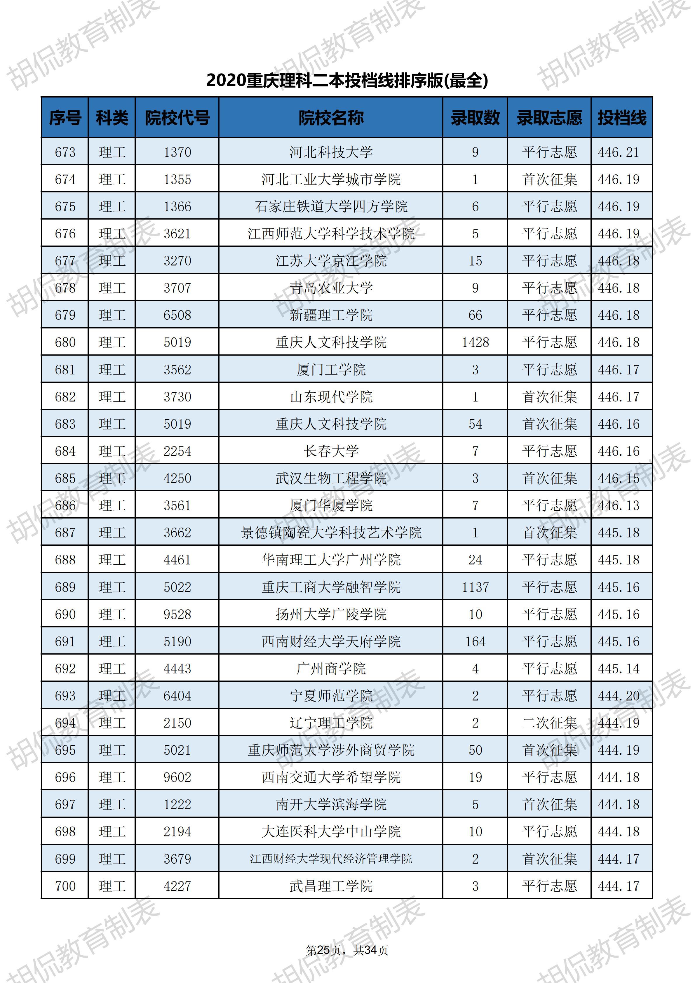 至此,重庆已先后公布了四轮理科二本投档线,后面剩余的高校已寥寥无几,为了帮助广大考生家长更好的掌握各大高校今年的投档线情况,胡侃教育第一时间整理了排序版,并得出以下结论,供大家参考!