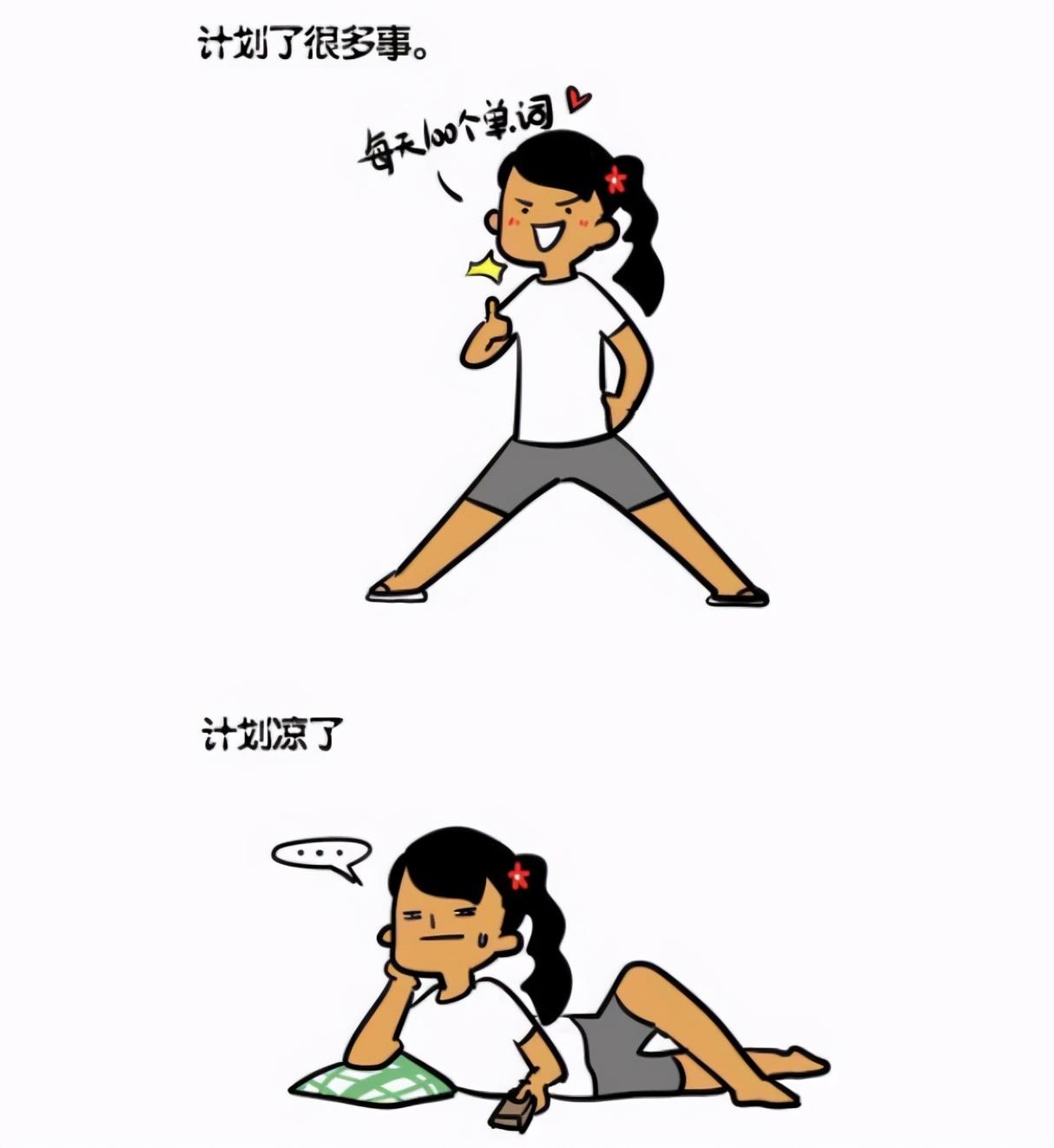 但是学生也得努力坚持下去才行啊!因此学生在随着时间的推移,自己也在不断地退步。最终自己也变得比较懒惰起来,到最后计划凉了,随之英语四六级的梦想里泡汤了。