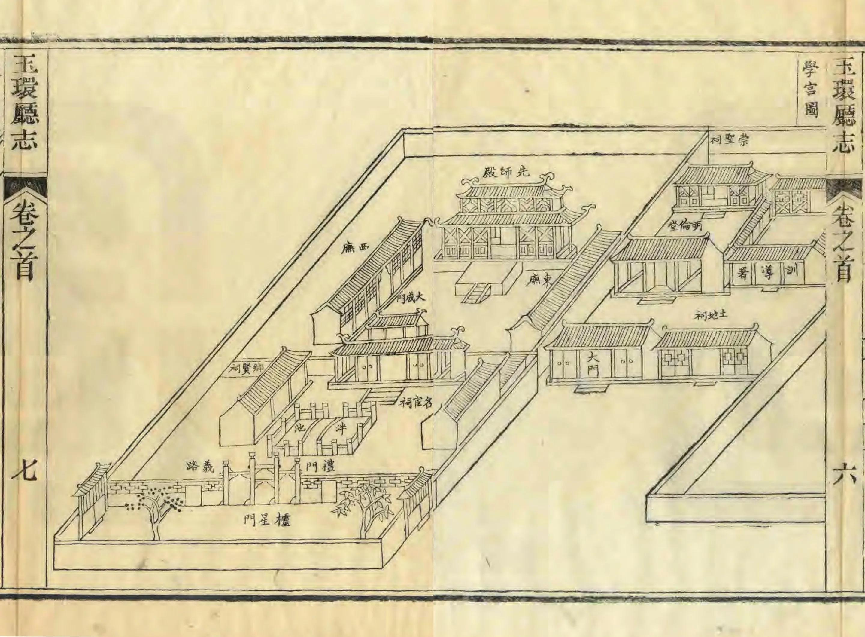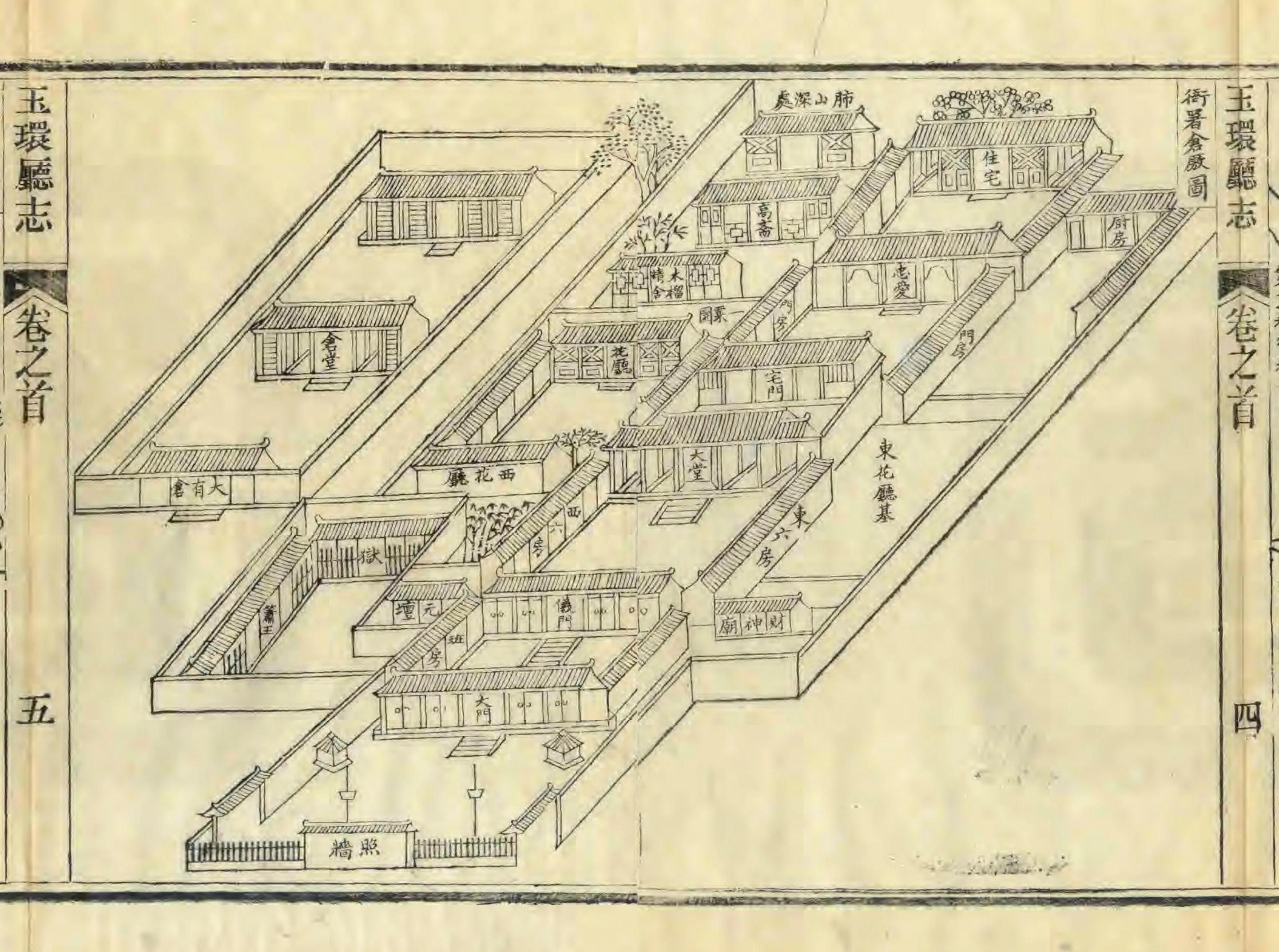 原城内以位于同知署前、连通东西两门的黄旗大街为主街(今以城中路为界,西段统称西青街,东段称东城路),西接西门外商铺聚集的西青街,南接通往南门的南正街(今广陵路)。主要建筑有同知署(亦称厅治,位于城北中青山南麓,已不存,其址今为玉环市政府大院)、巡检署(位于同知署西南,已不存)、参将署(位于城东北东青山南麓,早年已圮)、大有仓(位于同知署西,已不存)、学宫(玉环县学文庙,位于城东南,主体建筑已不存,仅存泮池泮桥,为玉环市文物保护单位,其址今为环山小学)、考棚(玉环试院,位于学宫东,已不存)、城隍庙(位于同知署东,已不存,其址今为玉环市政府东院)和环山书院(原位于同知署西南,后迁入考棚,已不存)等。