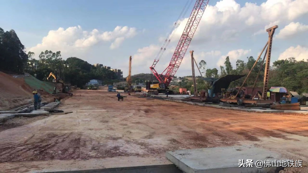 大学城站为地下三层车站,总长182m,标准段宽20.1m,基坑深约24.2m~26.5m,共设置2个出入口、2组风亭、1个地面式冷却塔,建成后将显著提升佛山大学城数万师生的出行效率。